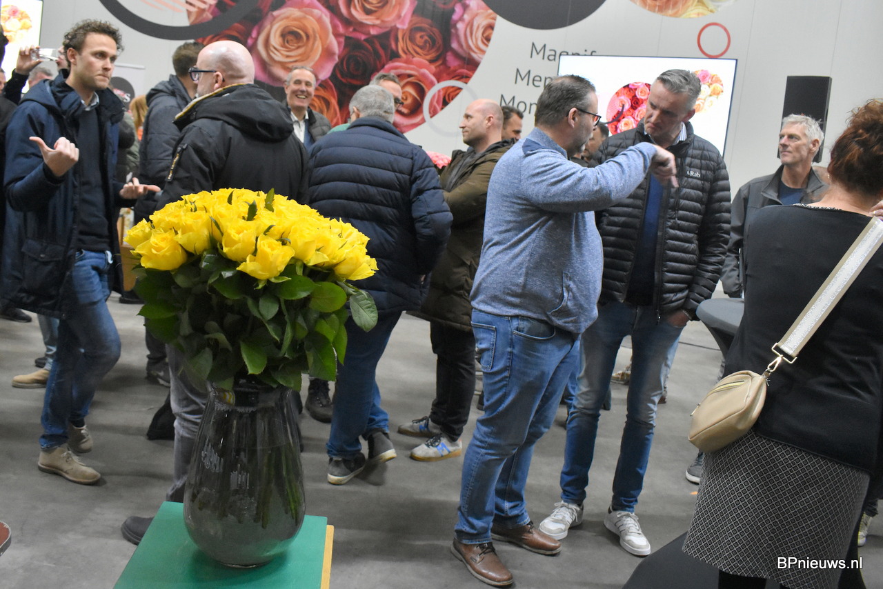 Veilingmeester in Naaldwijk Ger de Brabander praatte even bij met Michel Buitenhuis van Kleef Roses.