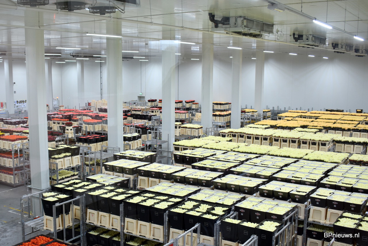 De koelruimte van 1500m2 waar de orders voor Nederlandse en Keniaanse daghandel wordt gepicked.