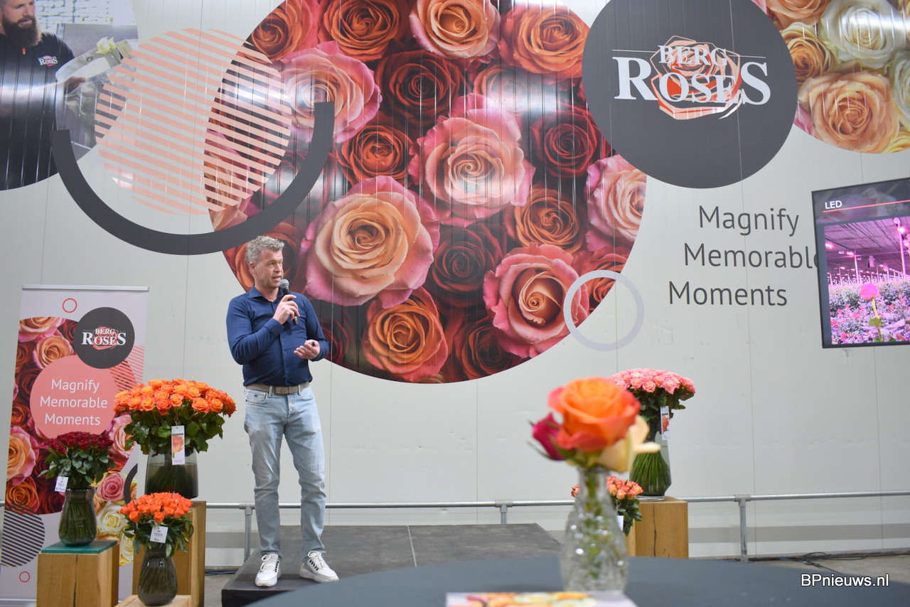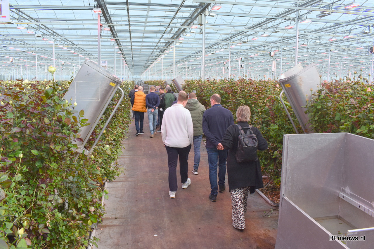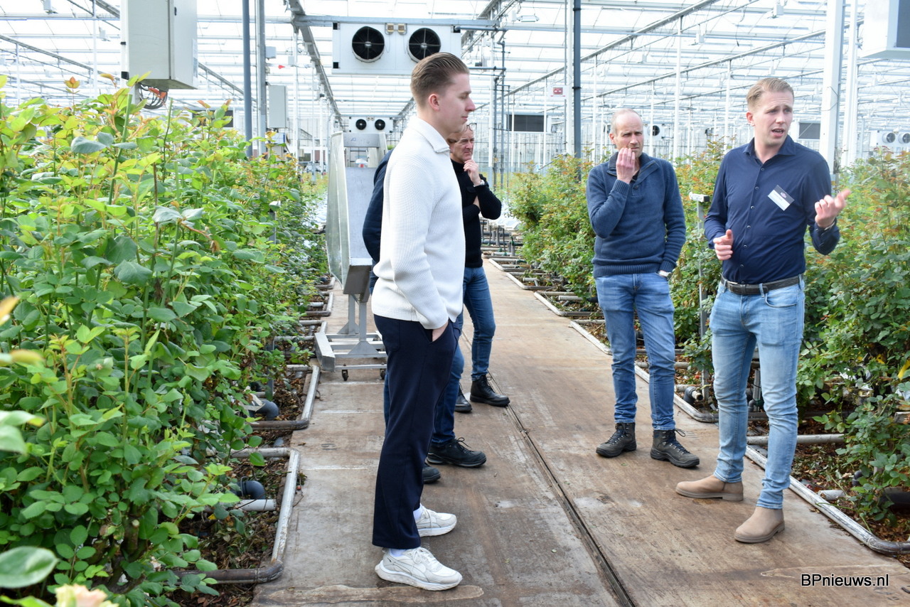 Thijs van den Berg gaf ook een groep de rondleiding door het bedrijf. Thijs is de oprichter van Berg Roses en liep, al vertellend over de verschillende onderwerpen, met gepaste trots door het bedrijf.