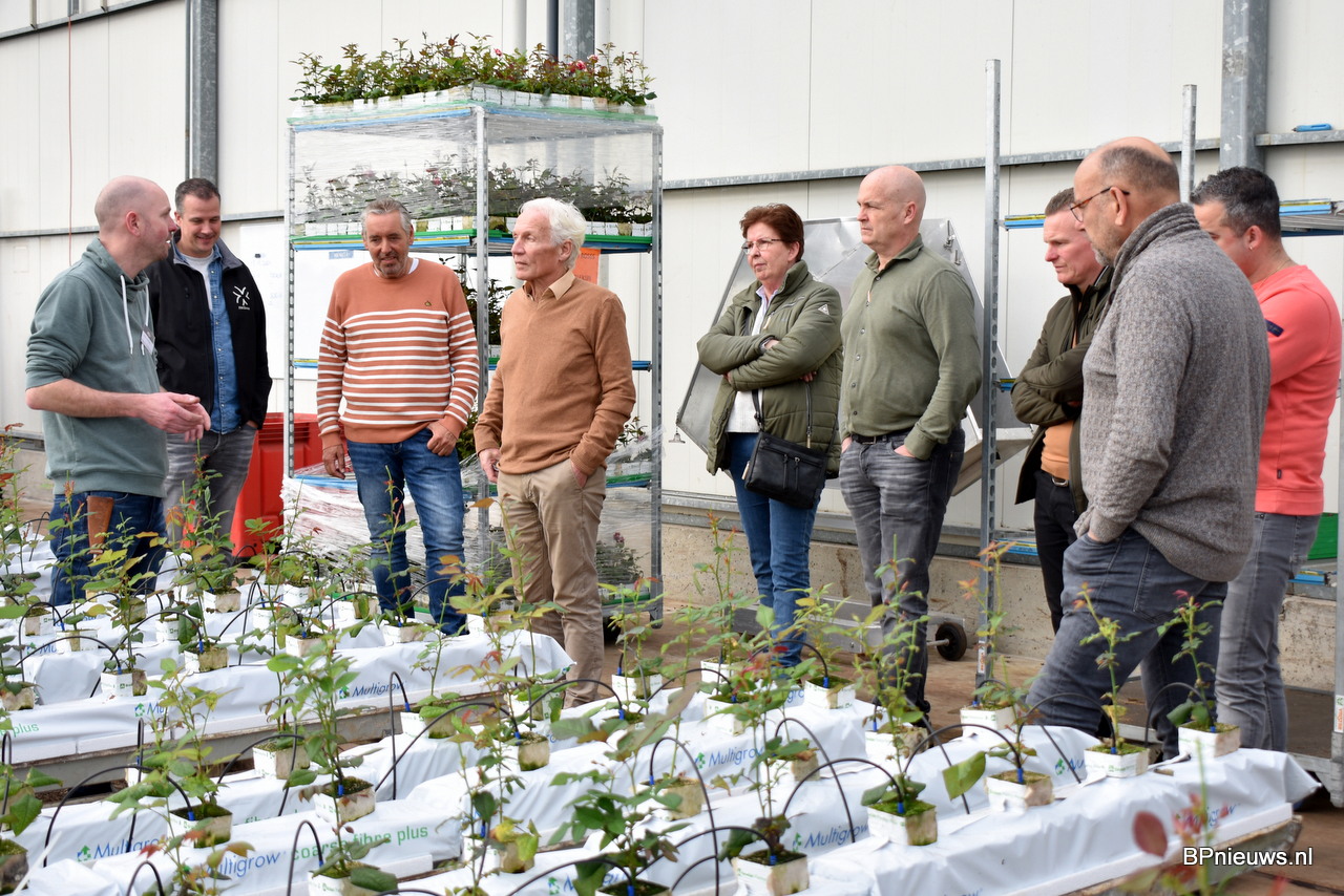 Christian Teerds, tweede van links met het blauwe overhemd, verteld over het nieuw aangeplante gewas.