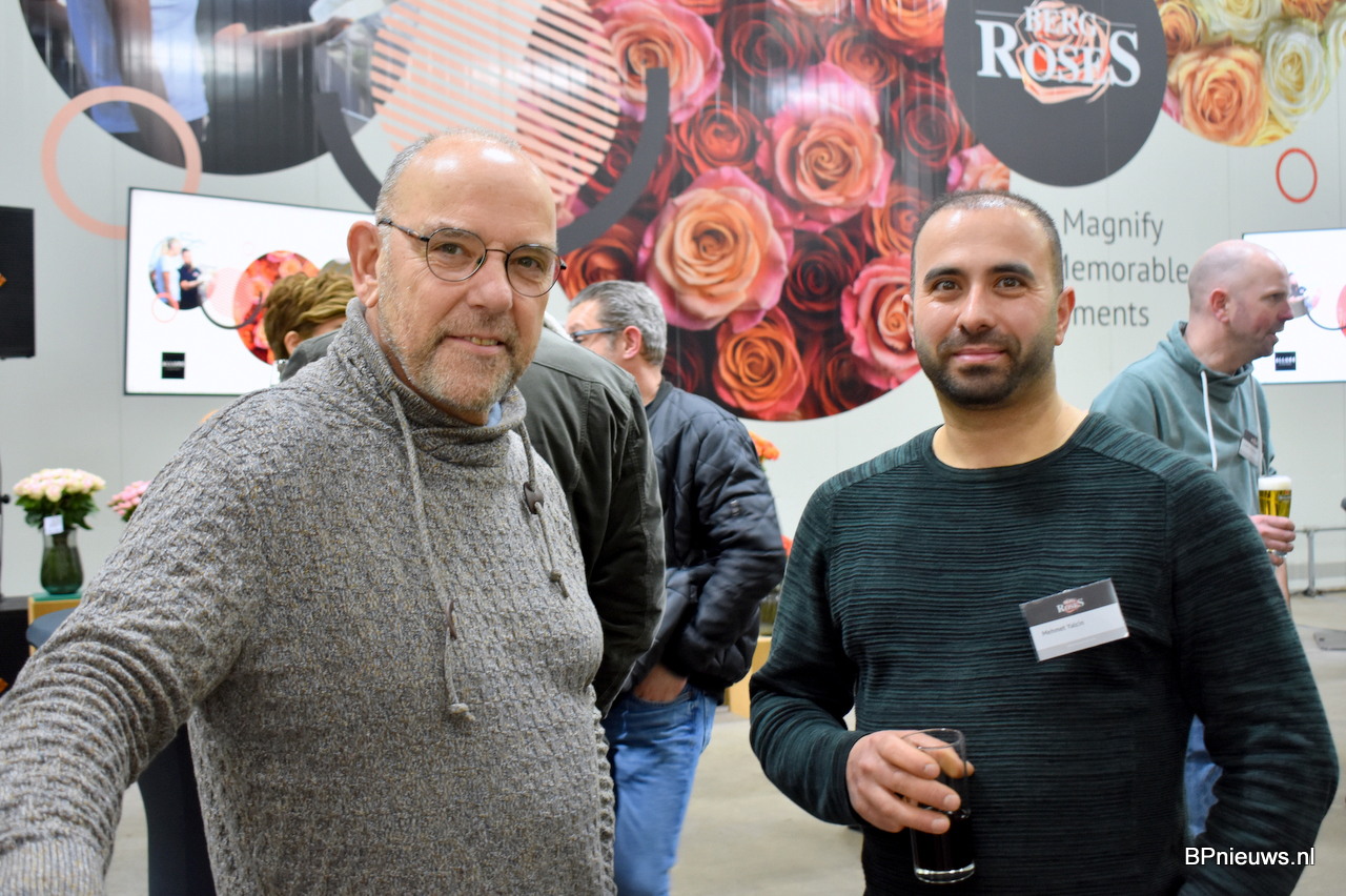 Arie Vreugdenhil van Plantion kletste na de rondleiding wat bij met Mehmet Yalcin van Berg Roses.