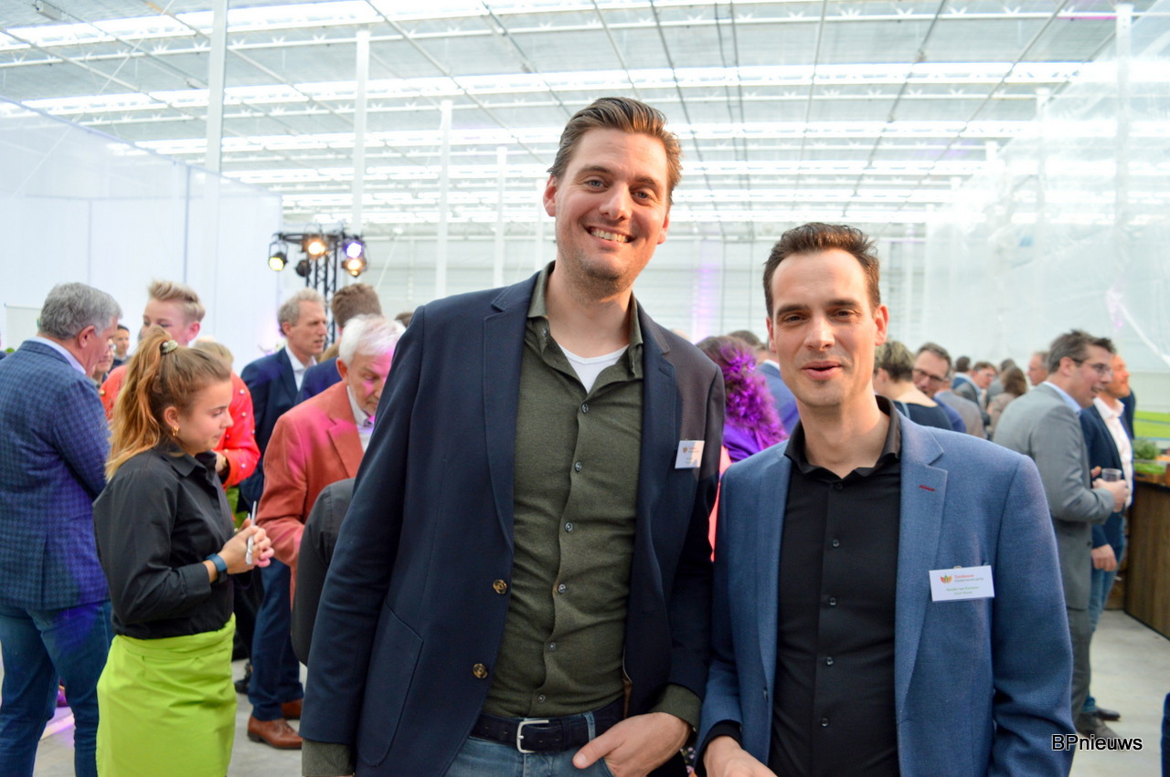 Pieter Varekamp van Gemeente Westland en Ronald van den Breevaart van Greenport Aalsmeer druk in gesprek.