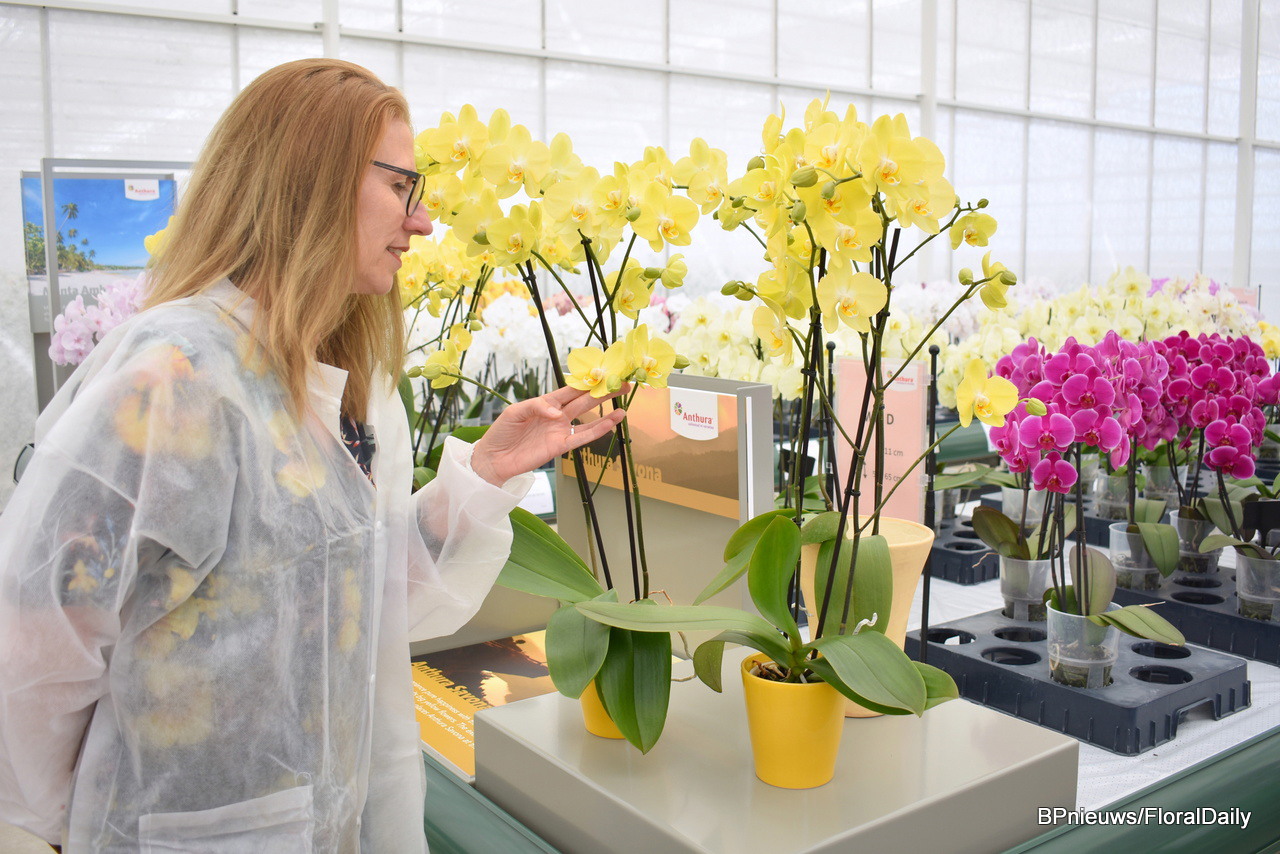 Mareen Bogerd met Anthura Savona. “Met deze grootbloemige phalaenopsis met grote gele bloemen ervaar je puur geluk. Met de goede houdbaarheid van ruim 10 weken staat Anthura Savona hiermee ook aan de top voor de kleur geel.”