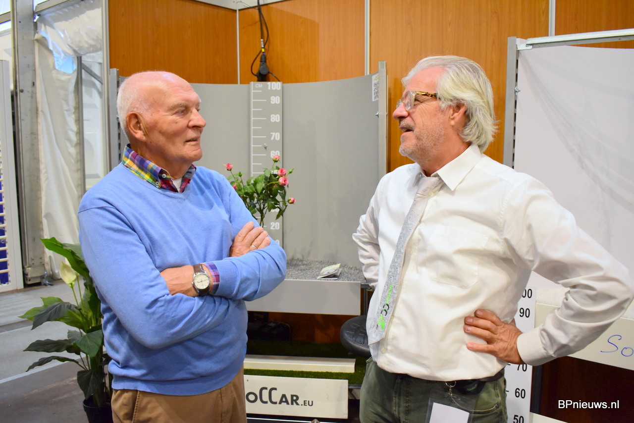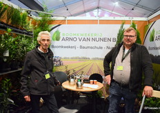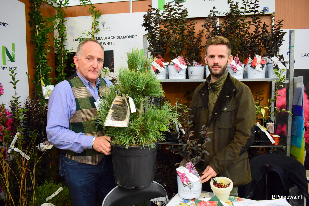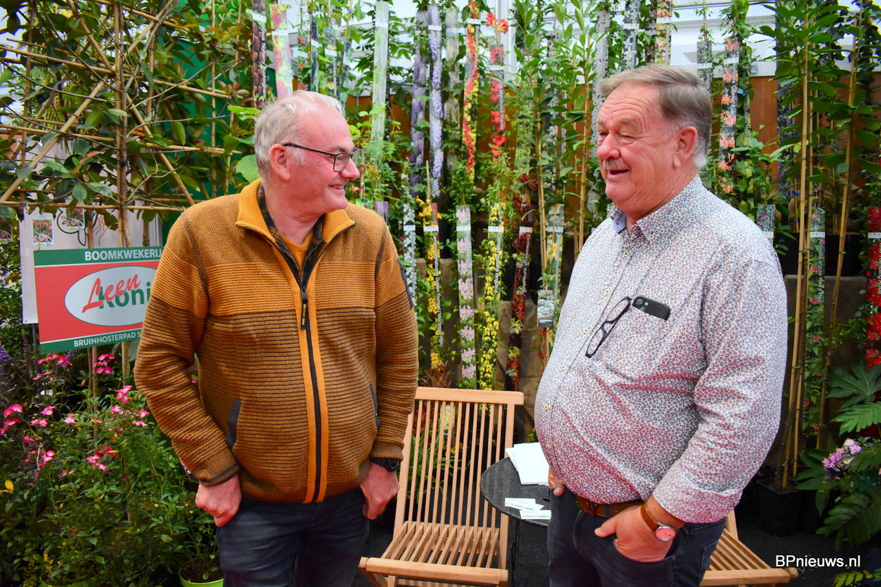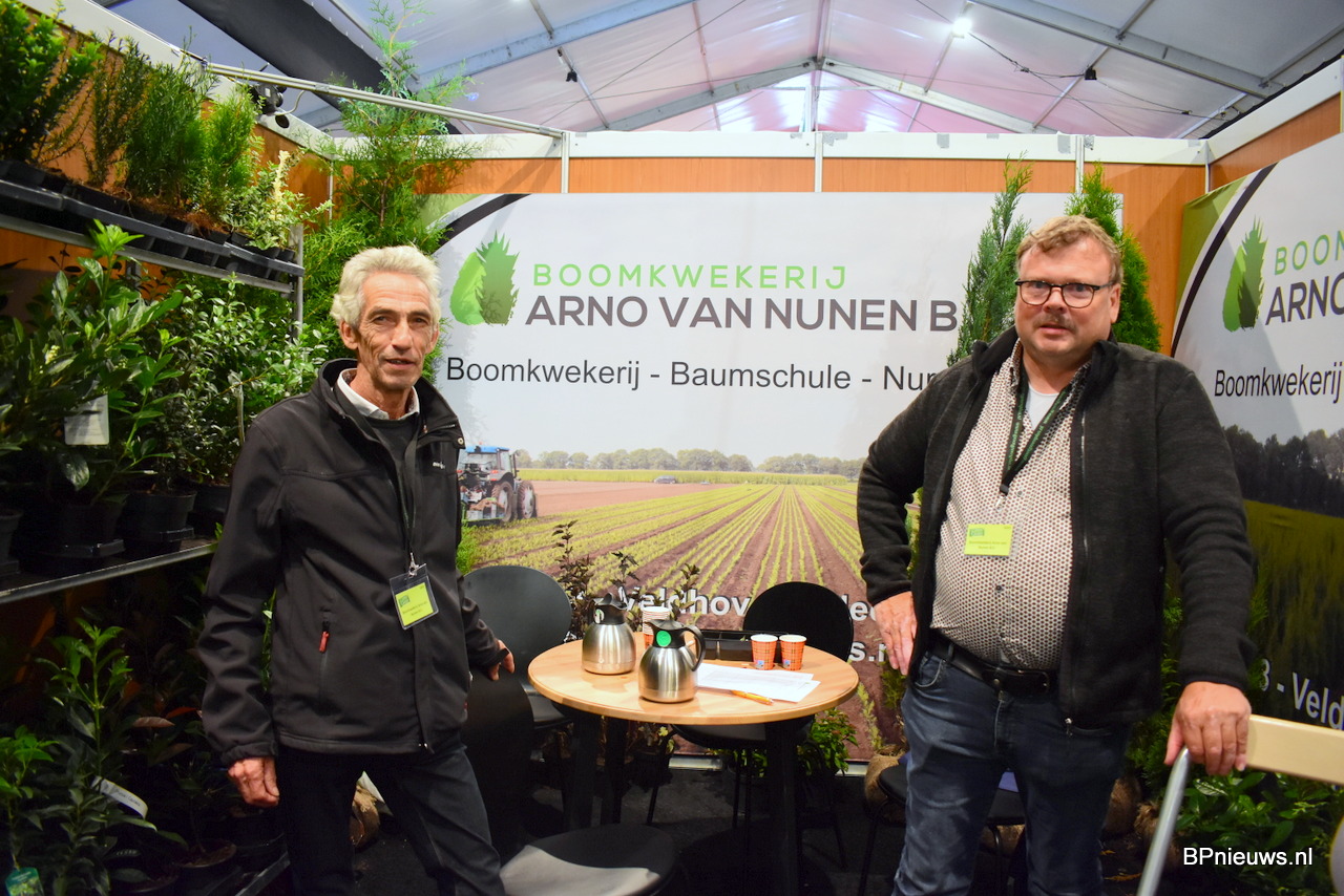 Johan Rombouts en Arno van Nunen stonden op de beurs met hun coniferen, taxus, prunus en heesters. Johan stond er voor de laatste keer, hij geniet binnenkort van een welverdiend pensioen.