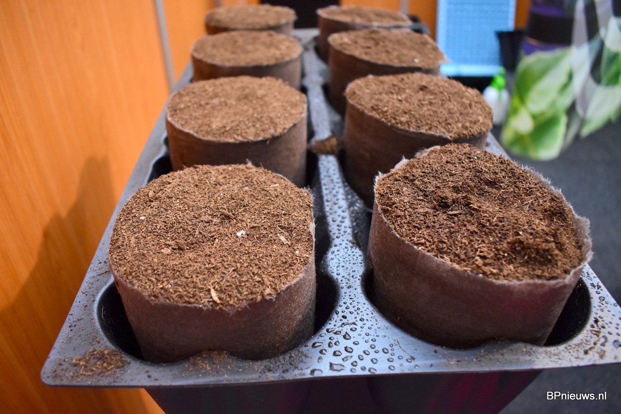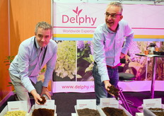 Eugène van Abeelen en Arie Schipper van Delphy met de veenvrije substraten.