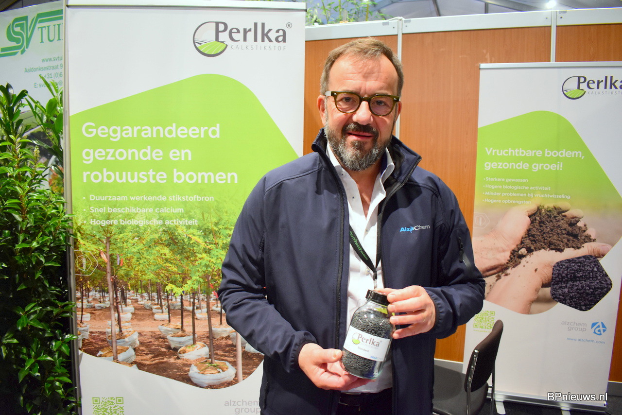 Wim Pacolet van de Alzchem group met de speciale minerale meststof kalkcyanamide die te groeperen valt onder slow-release meststoffen.