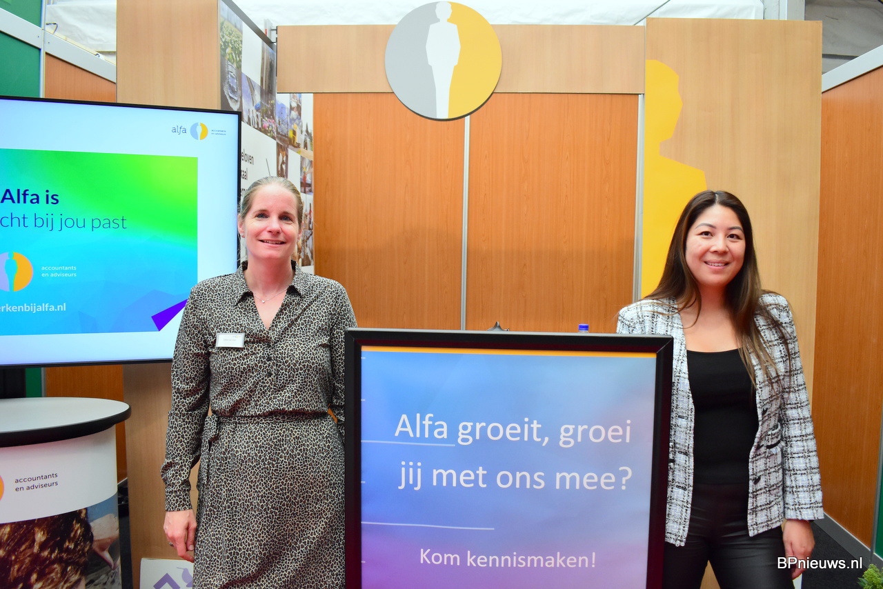 Esther van Uitert en Carlijn Kuiper van Alfa Accountants stonden op de beurs voor zowel potentiele klanten als medewerkers of stagairs.