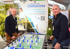 Erik Milants en Paul van Kempen van ICL speelden een potje tafelvoetbal. ICL had een actie op de beurs waarbij de tafel gewonnen kon worden. De mannen benadrukte wat zij tot nu hebben geleerd in het maken van volledige biologische afbreekbare coatings. Dit moet namelijk uiterlijk voor 2026 gerealiseerd zijn in verband met nieuwe regelgeving. Daarbij hadden zij ook de Jan van Dongen prijs gewonnen voor beste stand onder de toeleveranciers.