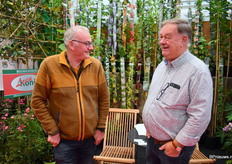 Leen Konijn (rechts) van Boomkwekerij Leen Konijn praat bij met Jan Winkelmolen (links).