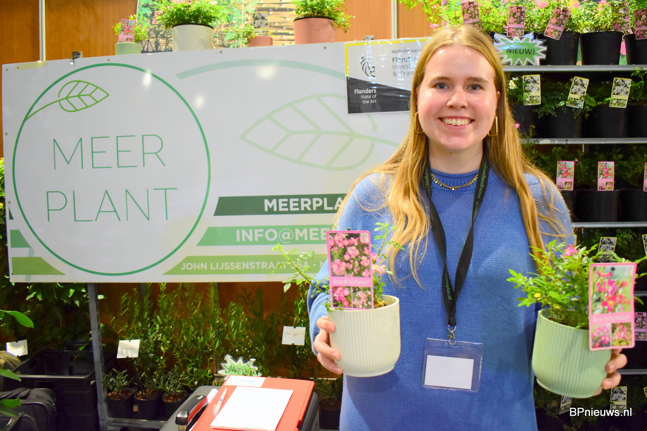 Nathalie Brosens van MEER Plant met de bodem bedekkende rozen. De rozen van zelfreinigend doordat de blaadjes eraf vallen. Dit voorkomt schimmels en zorgt voor contante bloeiende planten. Daarbij zijn al de planten hitte- en droogteresistent.