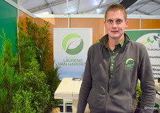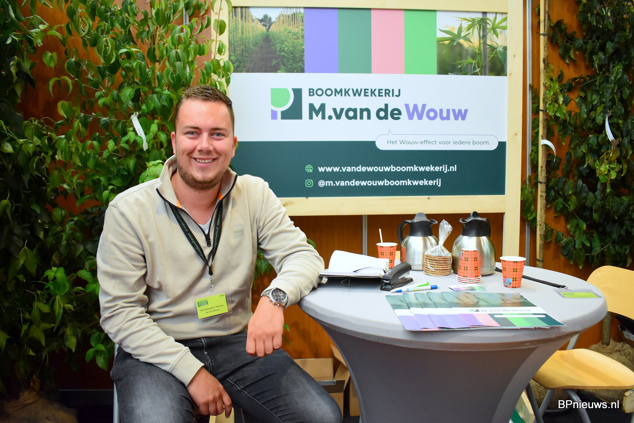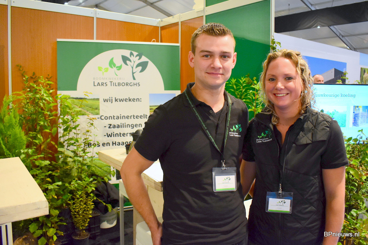 Lars Tilborghs stond op de beurs met zijn vlam Wendy van Hal. Lars is twee jaar geleden gestart met Boomkwekerij Lars Tilborghs, kweekt bos en haagplantsoen, en stond deze keer voor het eerst op de Groot Groen.