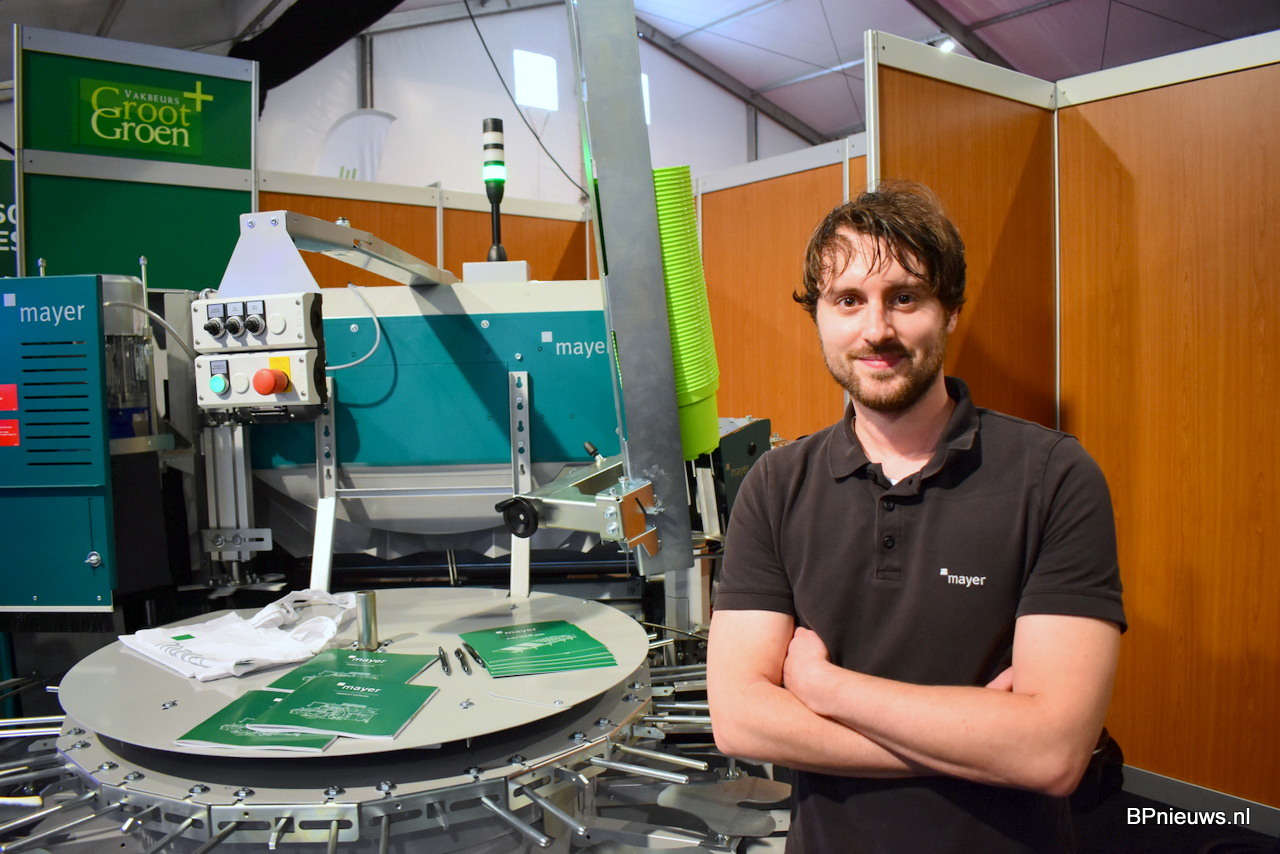 Mayer stond met de nieuwe TM 2400 E oppotmachine op de GrootGroen. Voor de machine in de stand werd op de beurs nog de handtekening gezet door de nieuwe eigenaar, Smart Plants. Mayer is sinds 5 jaar ook gevestigd in Venlo voor service en onderdelen om zo de Nederlandse markt beter te kunnen bedienen. Joshua Beuk van Mayer stond er voor als zijn klanten.