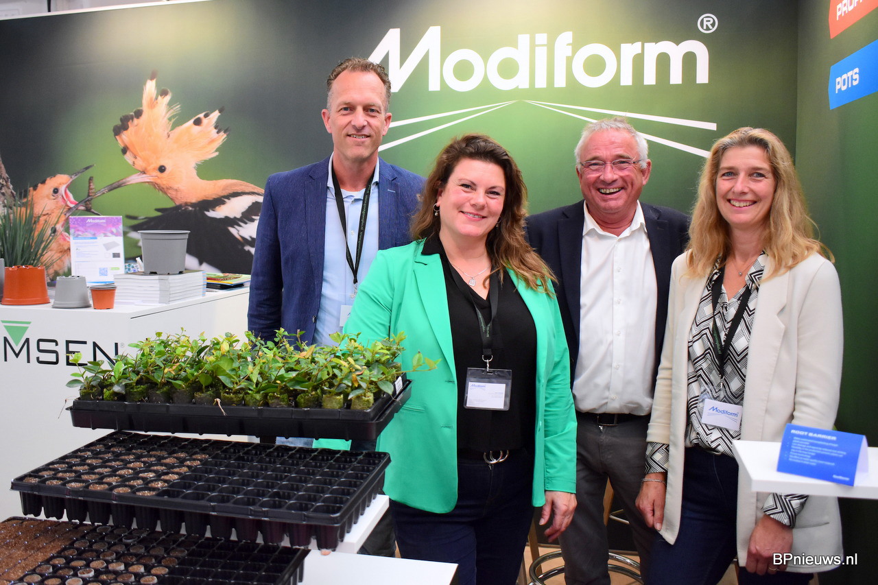 Modiform stond voor het eerst op de Groot Groen Plus. Hans Prins, Joyce Langeslag, Rob Franken en Treja Broos stonden er namens Modiform met hun assortiment trays voor de boomkwekerij. Daarbij toonden zij spuitgiet- en thermopotten voor de boomkwekerij.