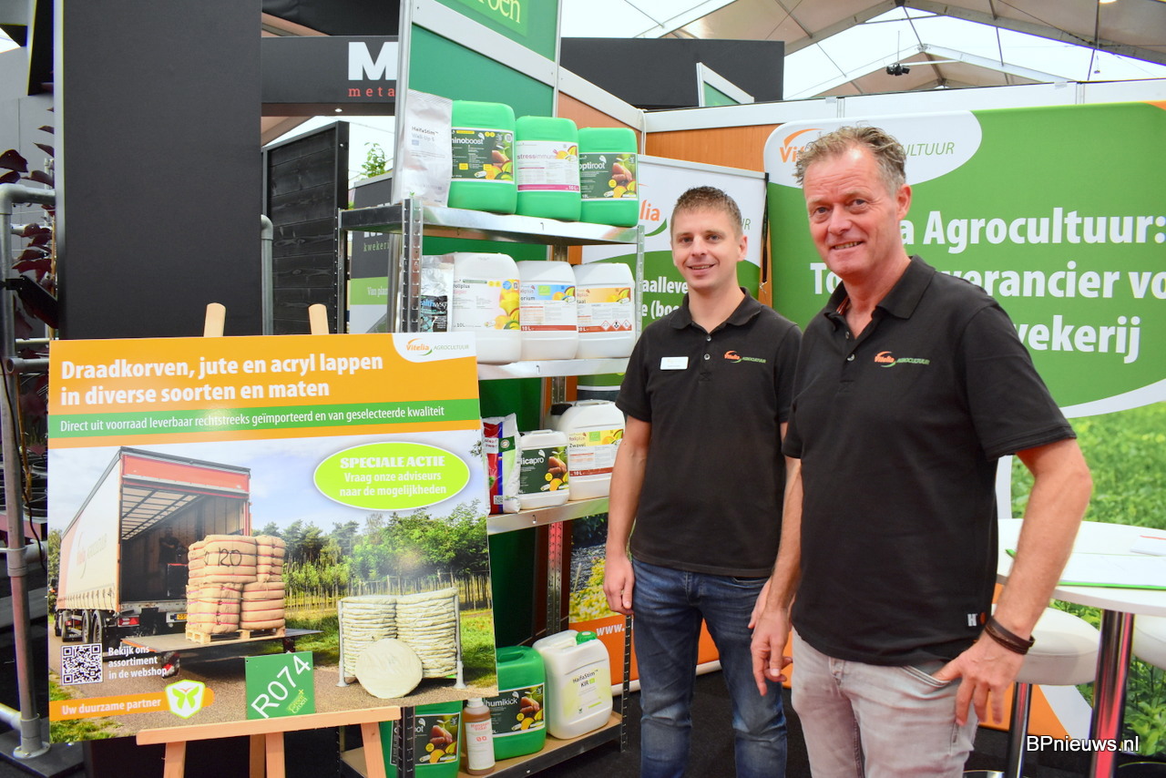 Sander de Pater en Marc Swinkels, de sales adviseurs van Vitelia, de lokaal leverancier van de boomkwekerij, gaven extra focus aan de verduurzaming van de teelt.