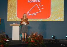 De 4 sprekers voor het panelgesprek waren v.l.n.r. CEO van de Dutch Flower Group Jan van Dam, Voorzitter Glastuinbouw Nederland Adri Bom-Lemstra, Demissionair Minister LNV Piet Adema en eigenaar van Tesselaar Alstroemeria Karolien Tesselaar van Tilburg.