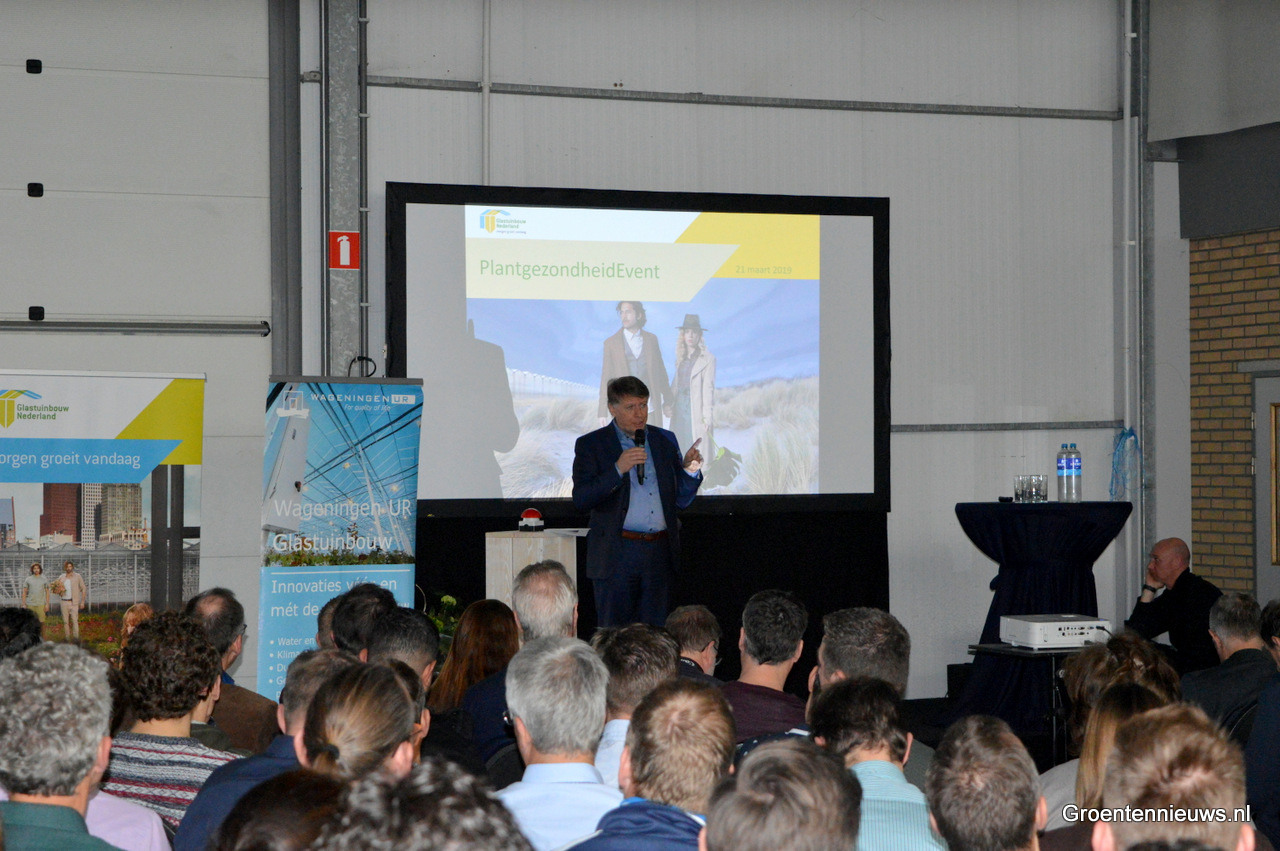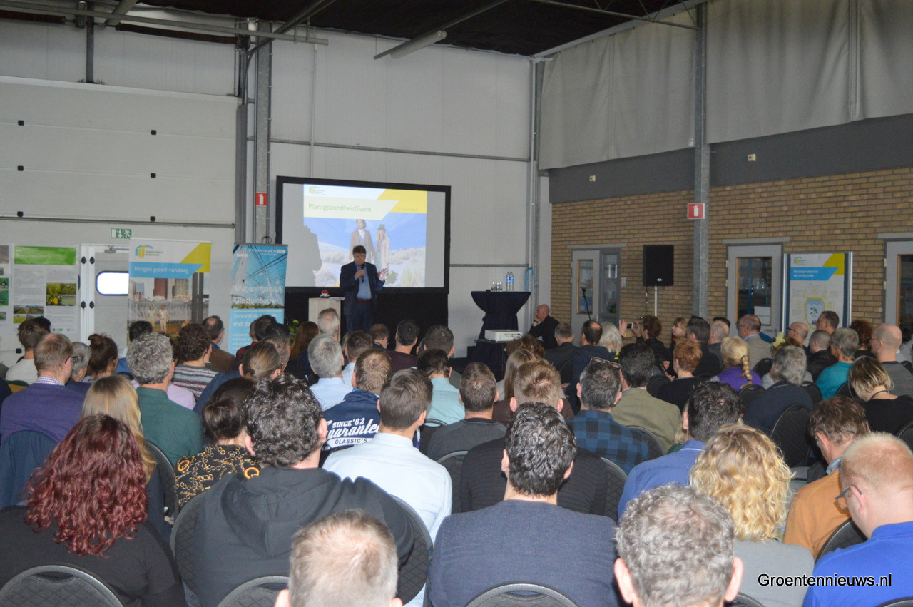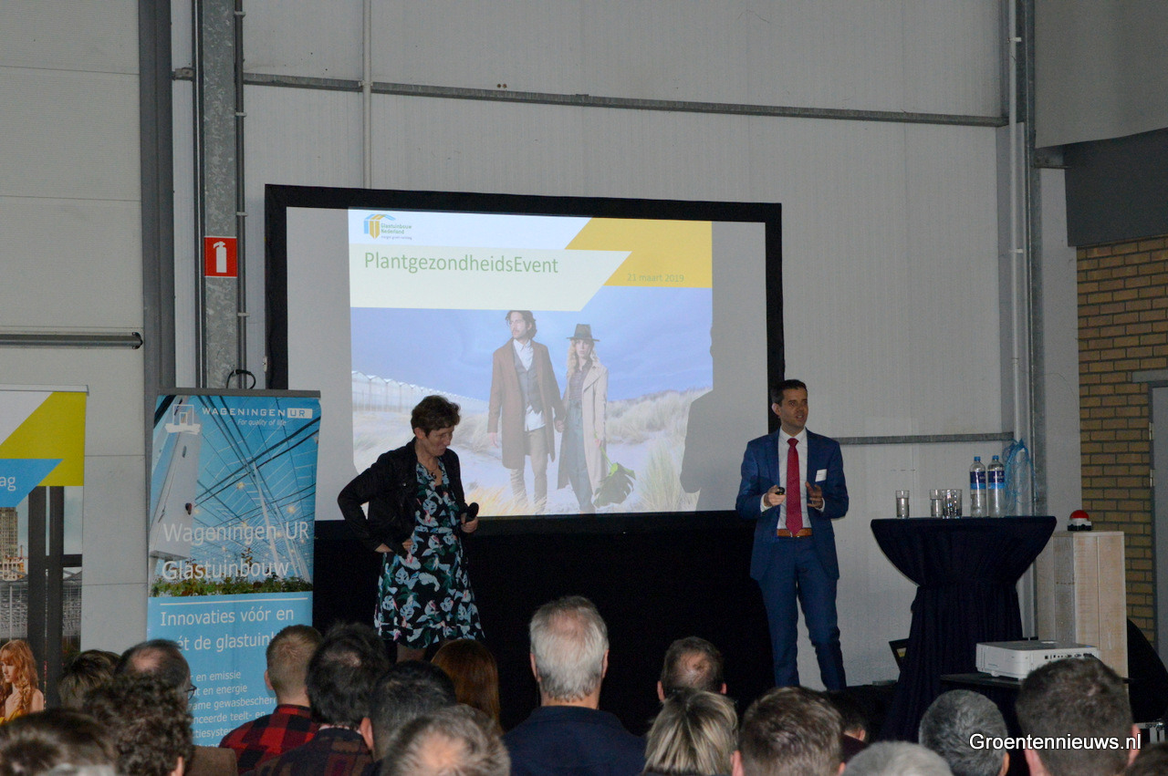 Helma Verberkt (Glastuinbouw Nederland) en Thijs Simons (voorheen van Plantum, sinds kort werkzaam bij SIA) probeerden de zaal mee te kregen met een interactieve sessie over de diverse onderzoeken die gaande zijn op plantgezondheidsgebied. Echte interactie kwam niet op gang, later tijdens de posterpresentaties en workshops wel.