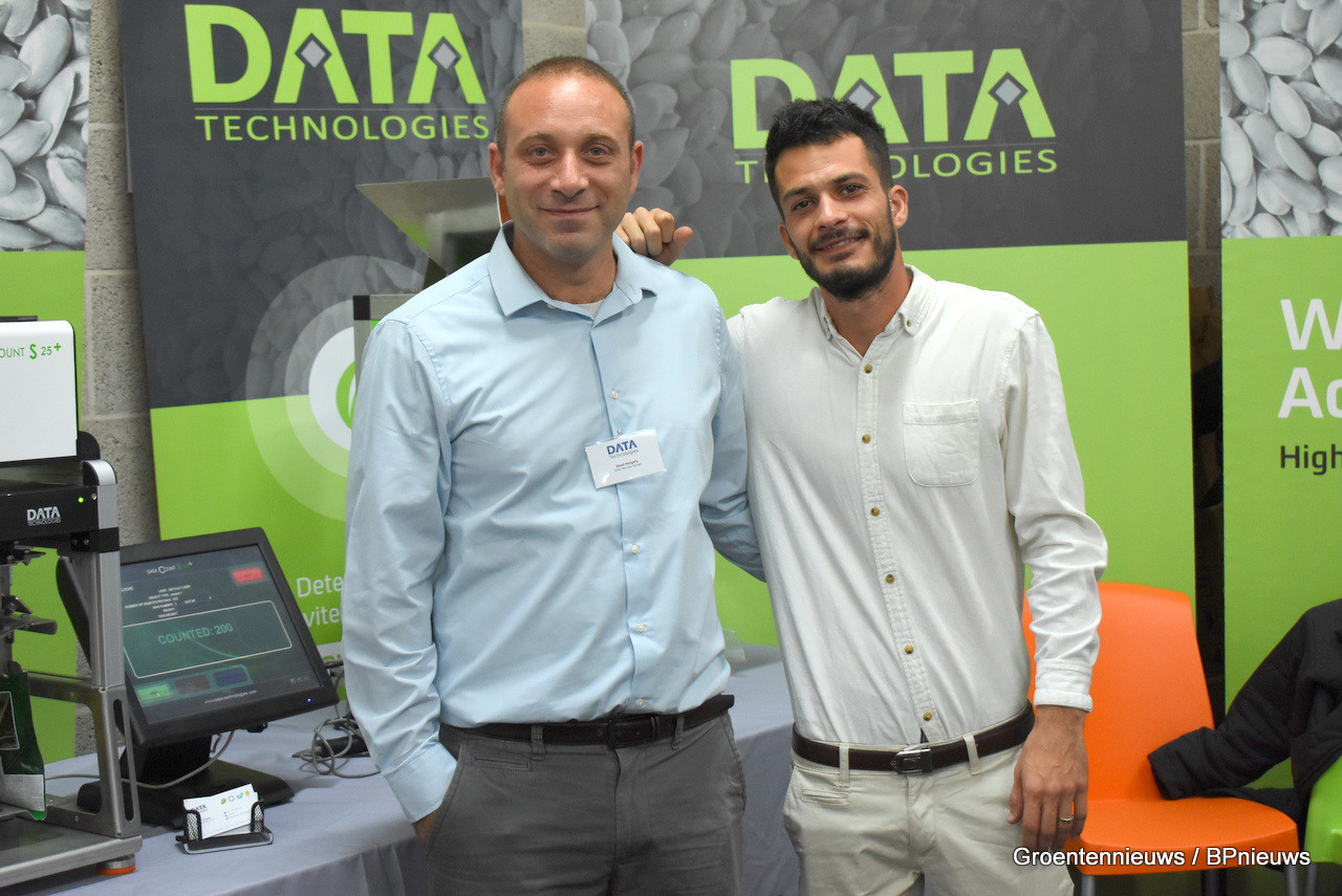 De mannen van Data Technologies Shaul Hengely en Itamet Velta uit Israël stonden er met hun zaden tel machines.