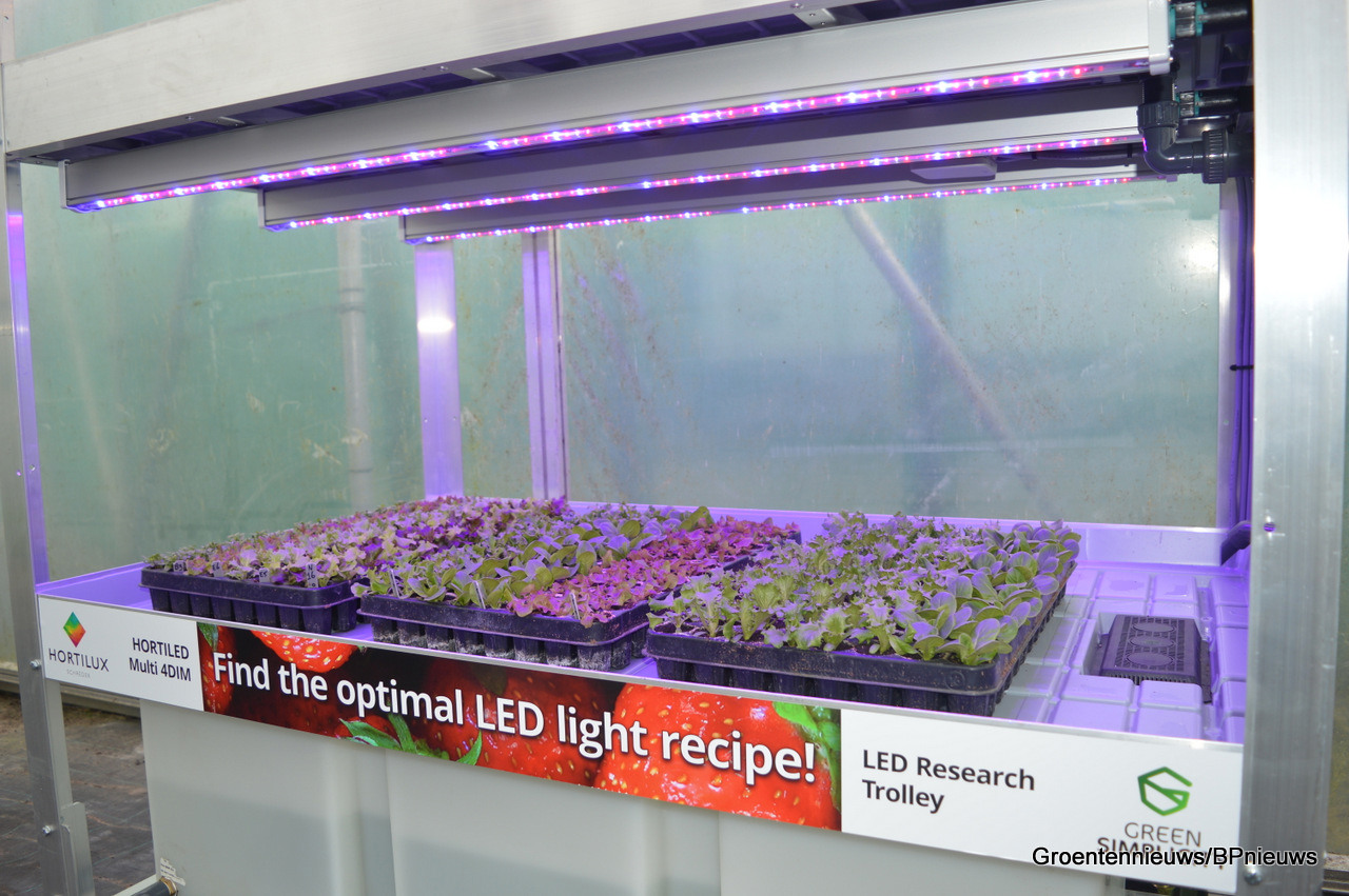 Voordat de bladgewassen op water worden gezet, vindt de opkweek plaats onder LED.