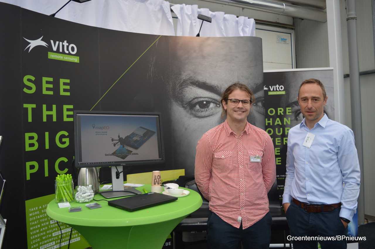 Sam Oswald en Jurgen Decloedt (Vito Remote Sensing) ontwikkelen software waarmee drones gewasdata kunnen verzamelen om die vervolgens op een kaart te presenteren, automatisering van het fenotyperingsproces dus.