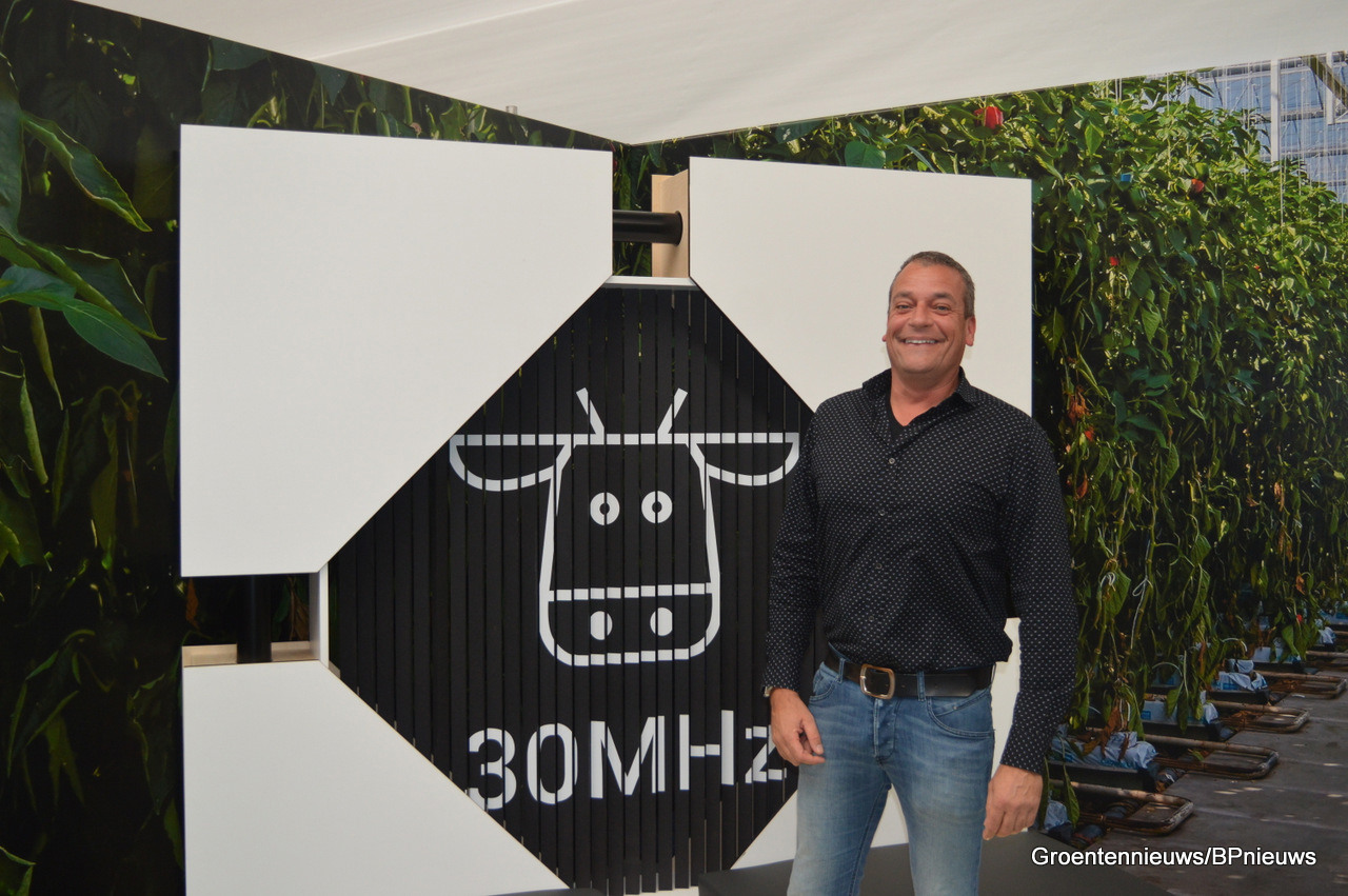 Kees van der Luyt van Pedak Meettechniek, dit jaar niet met een Landrover als eyecather, maar met potrozen om oranje stand een stukje extra op te fleuren. De mannen van het in sensortechniek gespecialiseerde bedrijf gaven op de beurs onder meer uitleg over private LoRa, een long range systeem om data meet te verzenden, alleen dan privé, dus zonder te hoeven betalen per stukje verstuurde data.