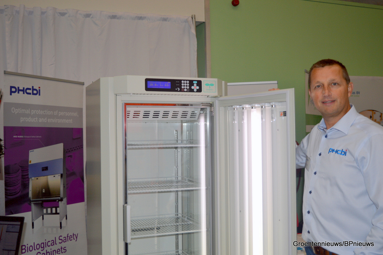 Renger van der Veen van PHC Europe had een klimaatkast meegenomen waarin luchtvochtigheid, licht en temperatuur kunnen worden gecontroleerd voor het laten opgroeien van zaden. Bovendien ontwikkelt het bedrijf ook vriezers voor zaadopslag, waarbij zaden tot wel -80 graden Celsius kunnen worden ingevroren.
