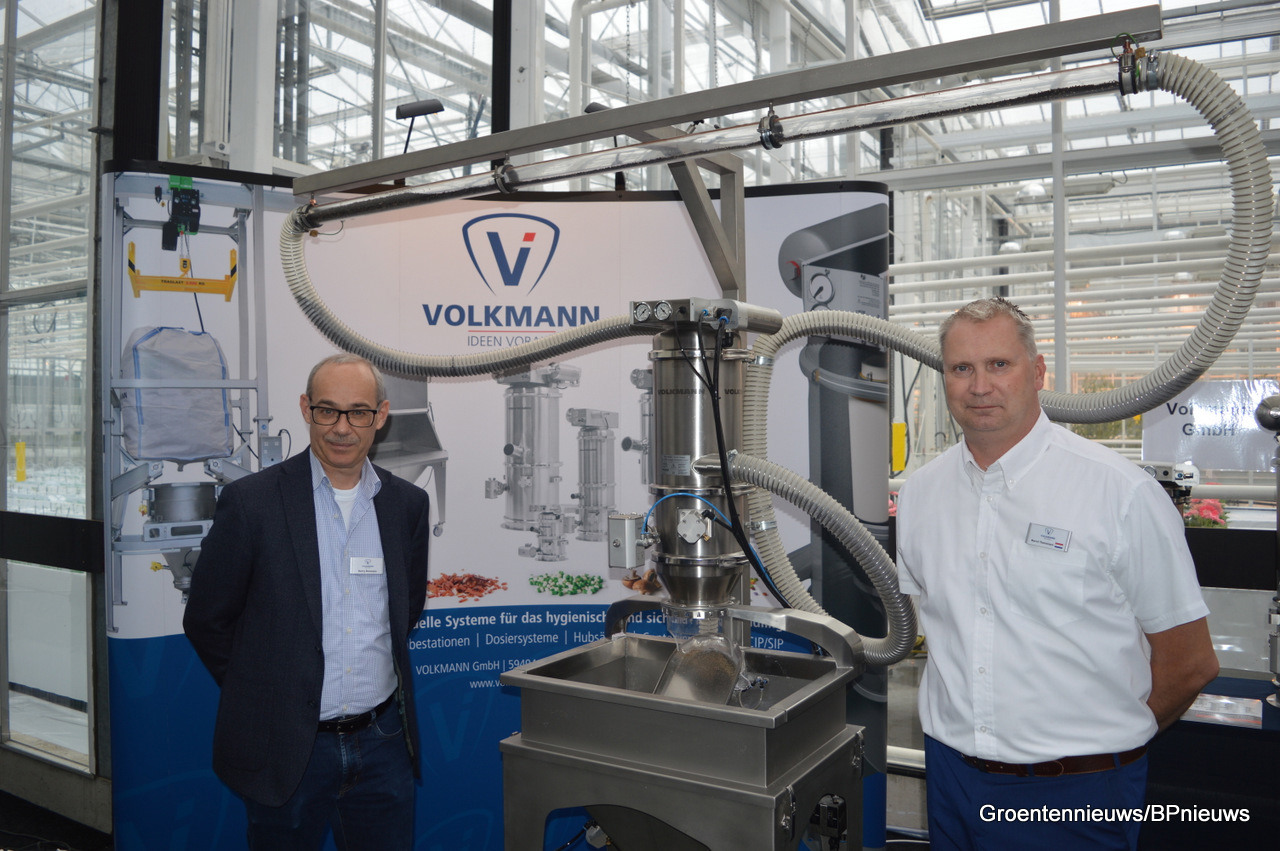 Harry Bosman en Marcel Thunissen (Volkmann GmbH) bij een vacuümtransportsysteem voor zaden.