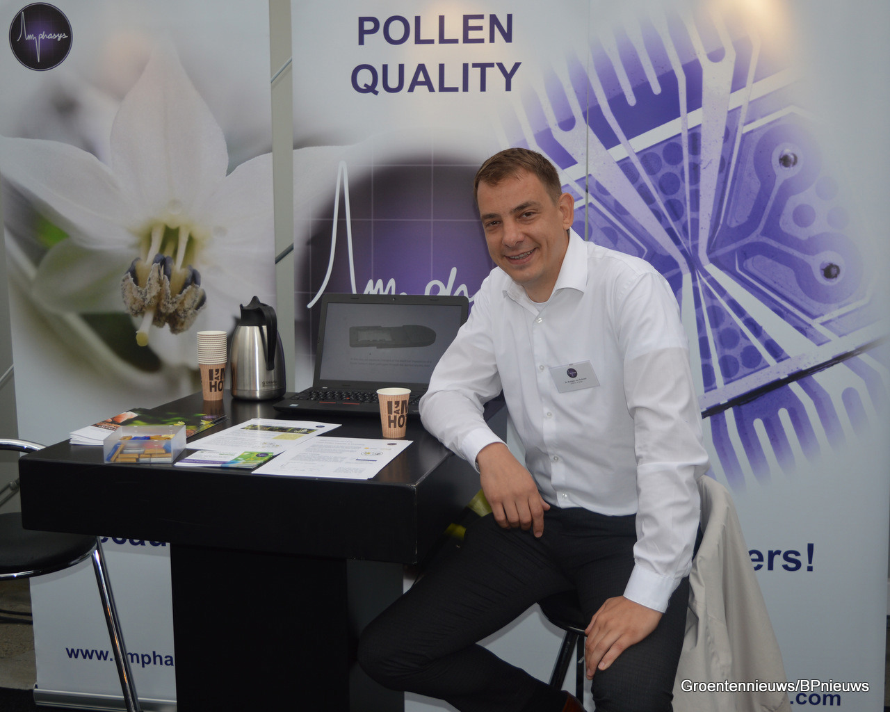 Ruthger van Zwieten (Amphasys) gaf bezoekers uitleg over hun techniek om met elektrische velden de kwaliteit van duizenden pollen binnen een minuut te analyseren. Daarmee kan het veredelingsproces worden geoptimaliseerd.