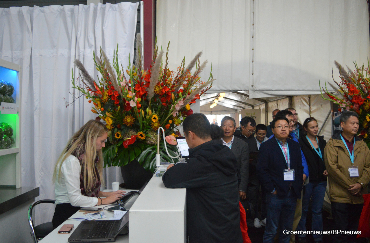 Ook aan het eind van dag een nog een flinke buslading bezoekers om in te schrijven alvorens zij zich mochten gaan vergapen aan de aanwezige (zaad)technologieën.