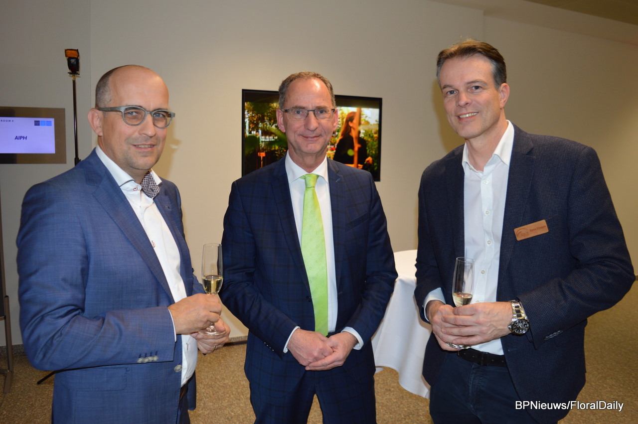 Willem Snoeker van Interpolis, Bernard Oosterom, president AIPH, en Coen van Ruiten van de Has Den Bosch