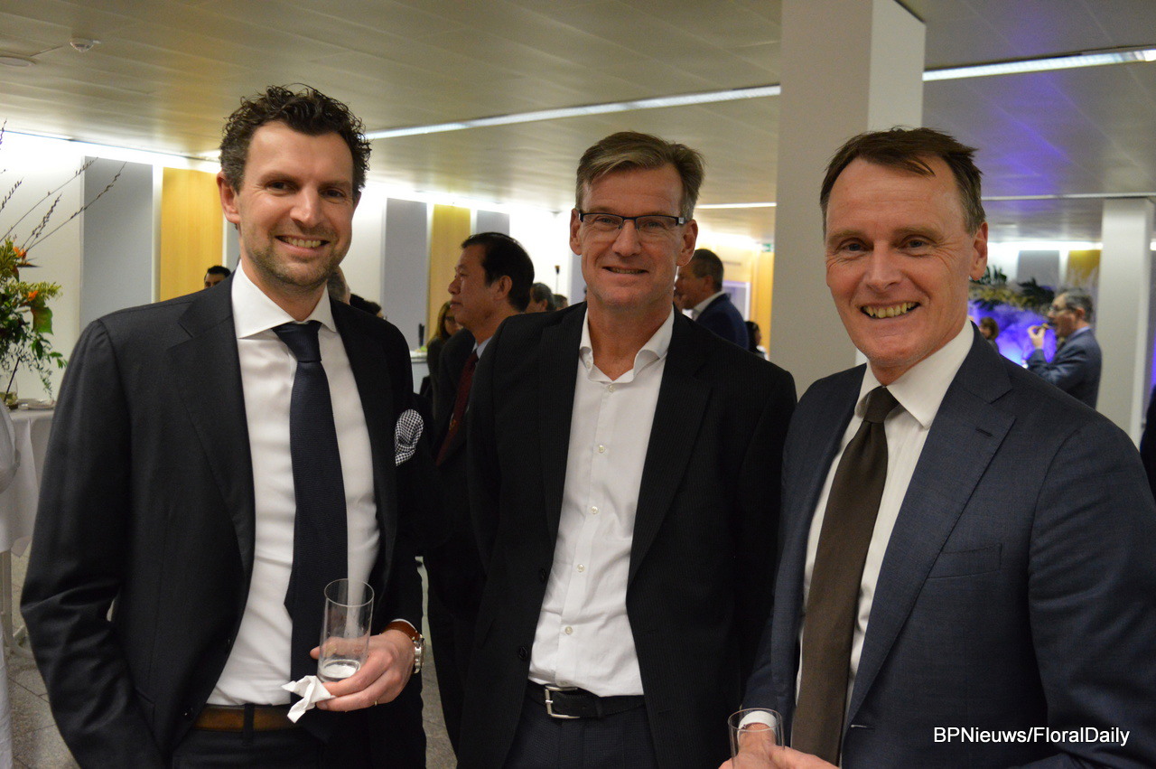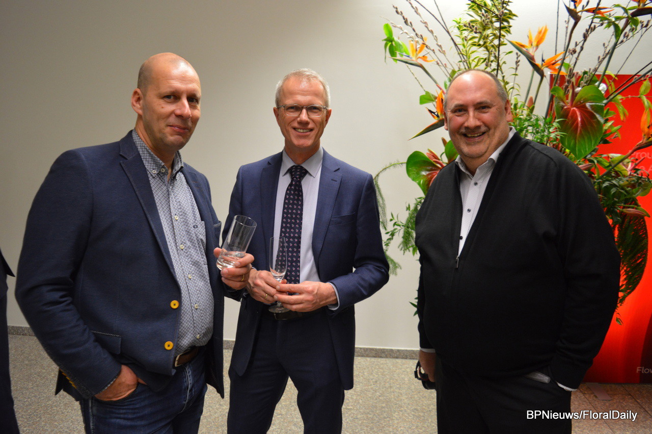 Jack Goossens, Decorum & voorzitter RvC Royal FloraHolland, Peter Bakker, directeur Plantion, en Kees Pingen, Smiths Kwekerijen