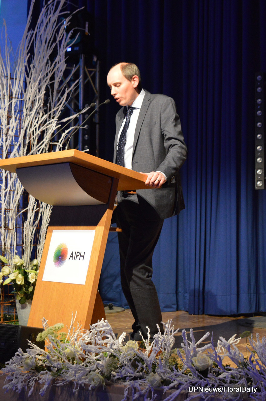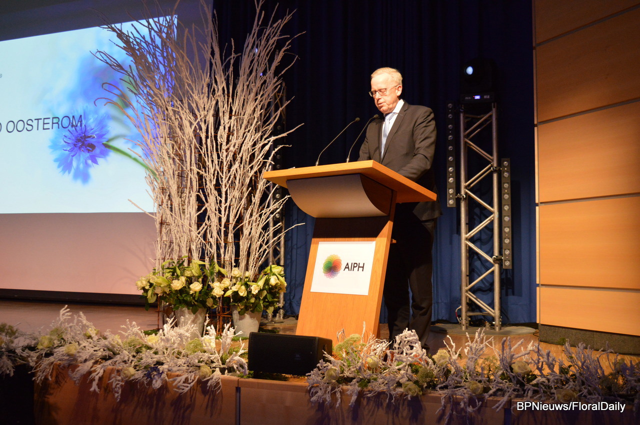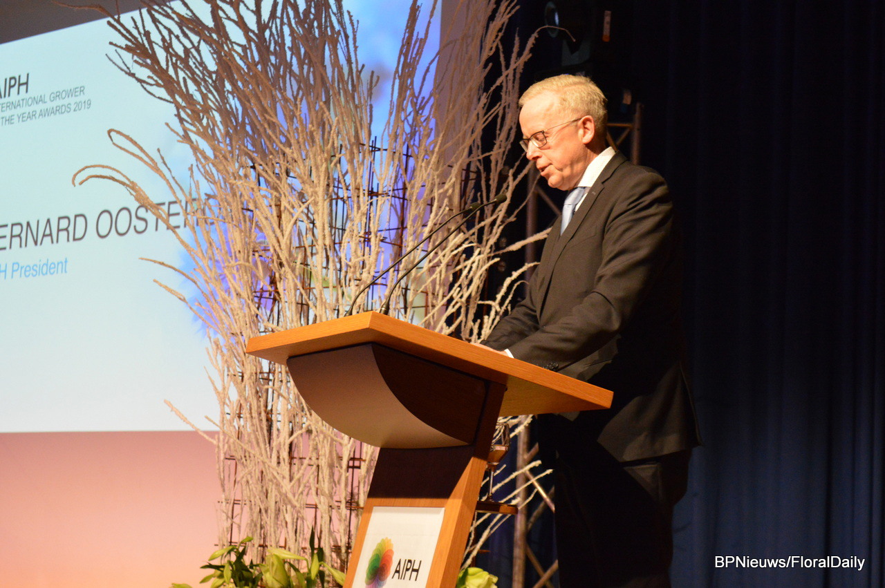 Bernard Oosterom, president AIPH, heet de genomineerden, sponsoren en andere gasten welkom