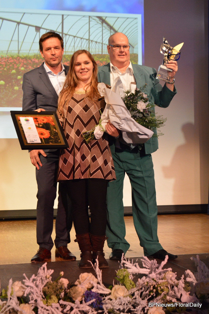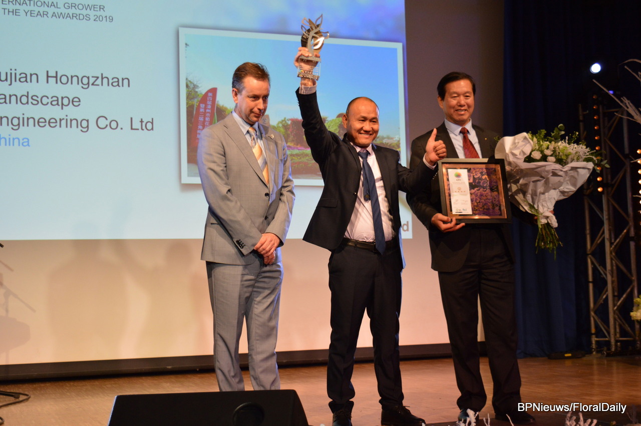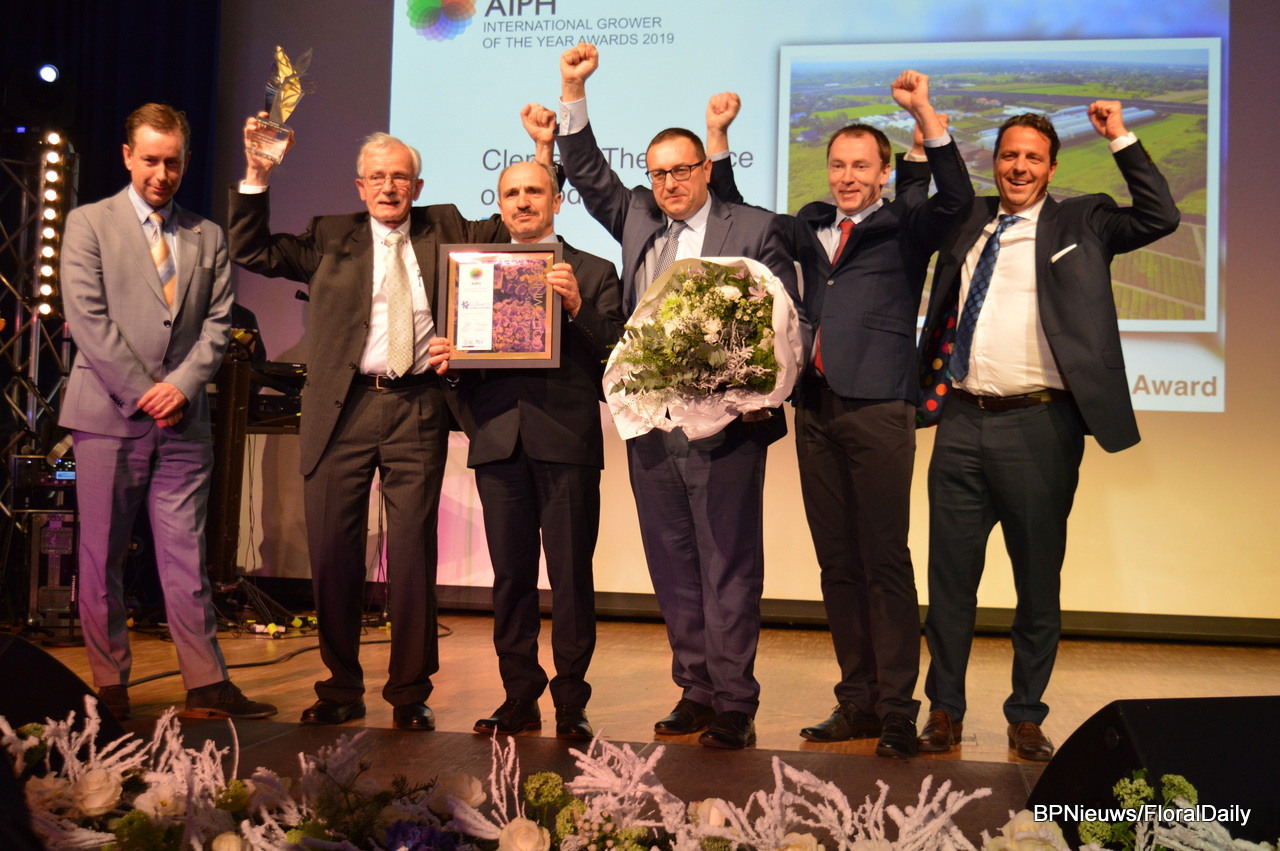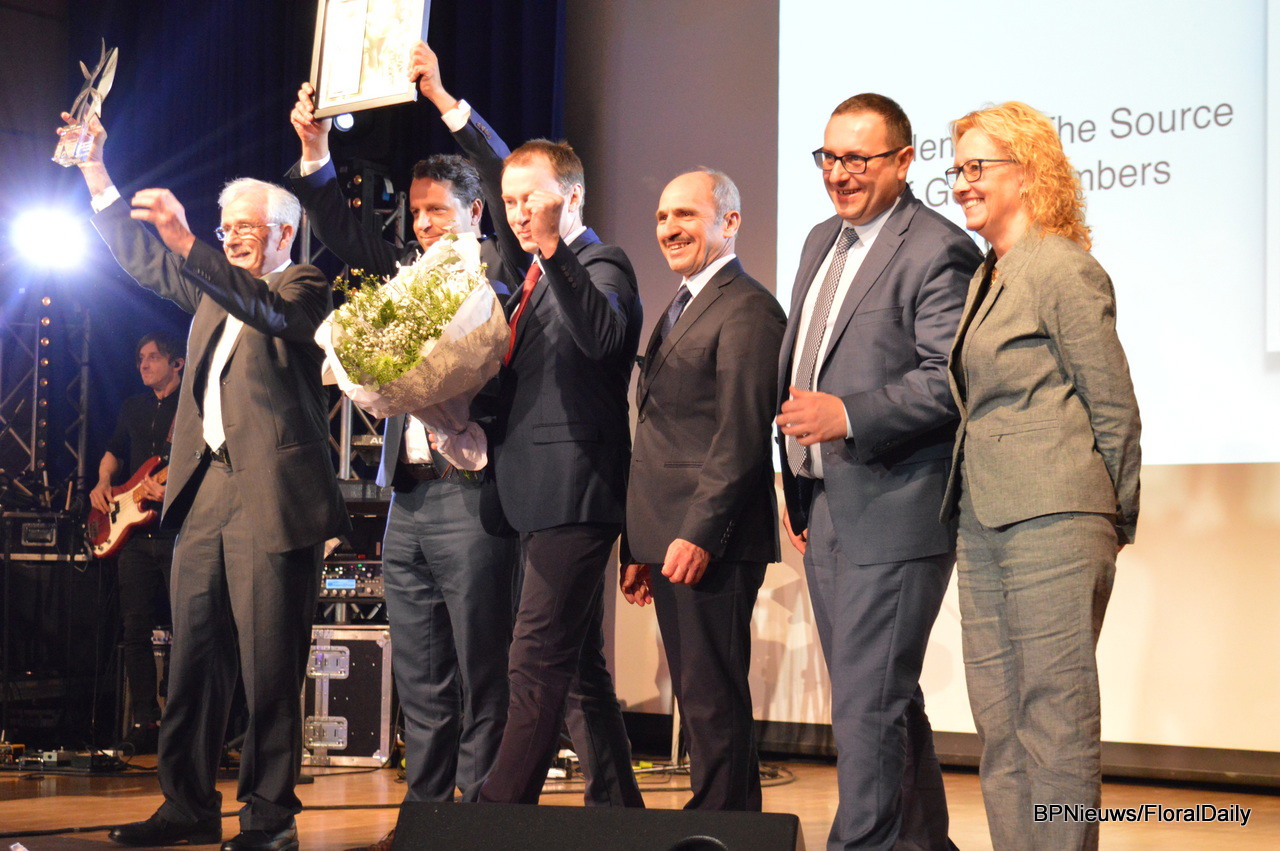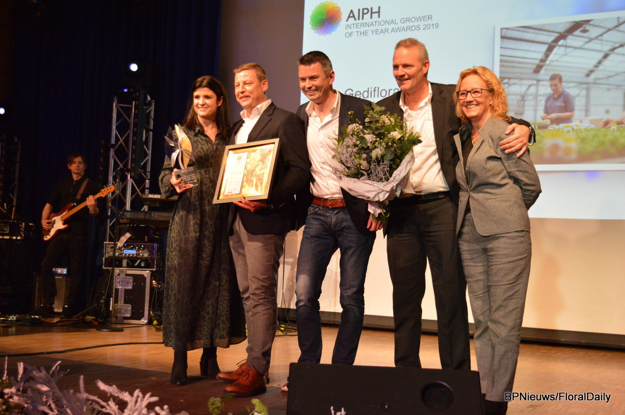 En waar het uiteindelijk allemaal om draaide: Gediflor werd gekroond tot International Grower of the Year. En Steven Schilfgaarde, CEO Royal FloraHolland en hoofdsponsor van het evenement, overhandigde de prijs.
