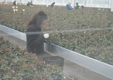 We maken een rondje rond (maar omwille van de hygiëne niet dóór) de kas en ontmoeten onderweg verschillende medewerkers die vertellen over de verschillende planten en highlilghts uit het assortiment.