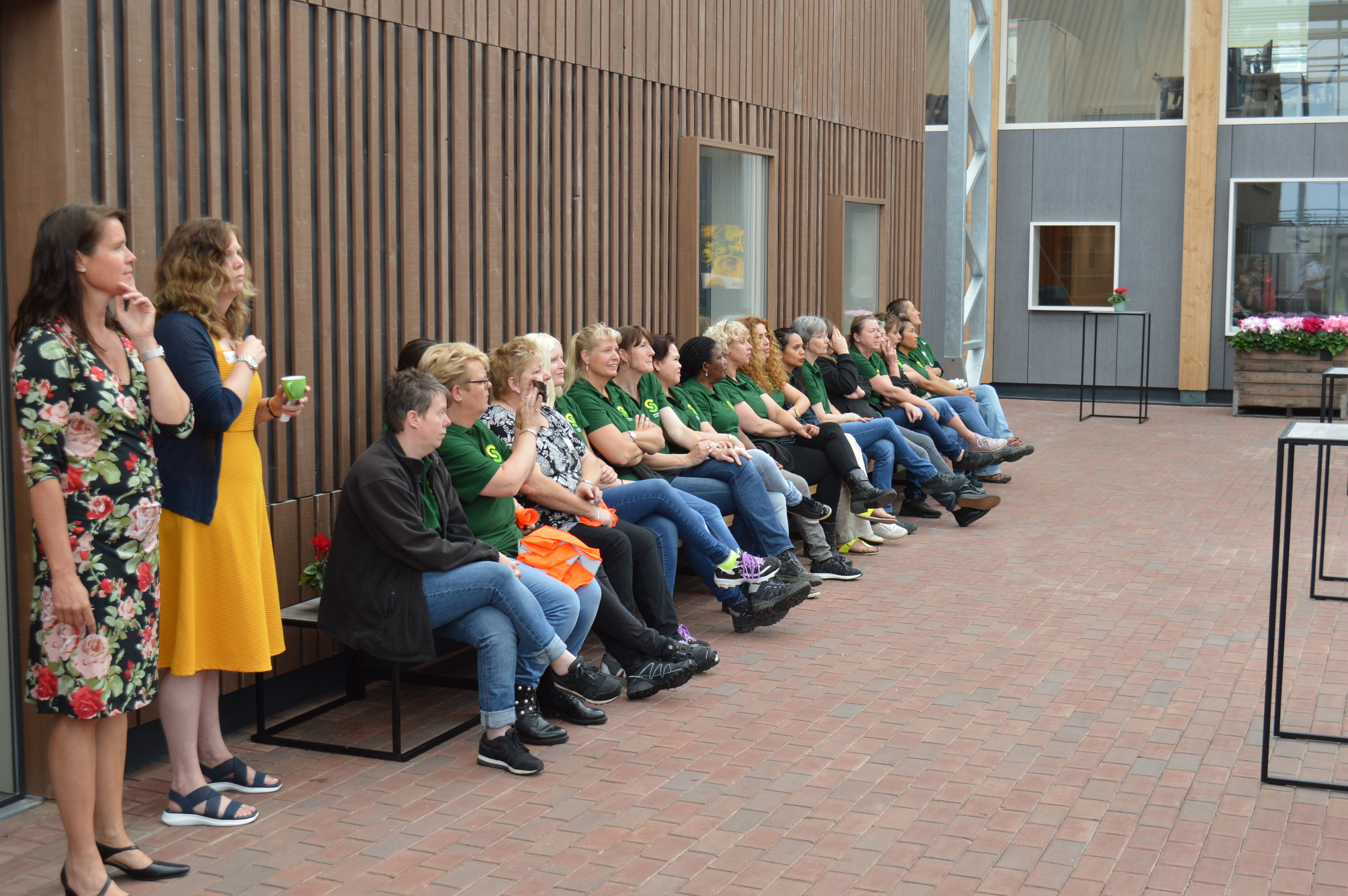 Medewerkers liet het werk even liggen en schoven ook aan voor de openingsceremonie.