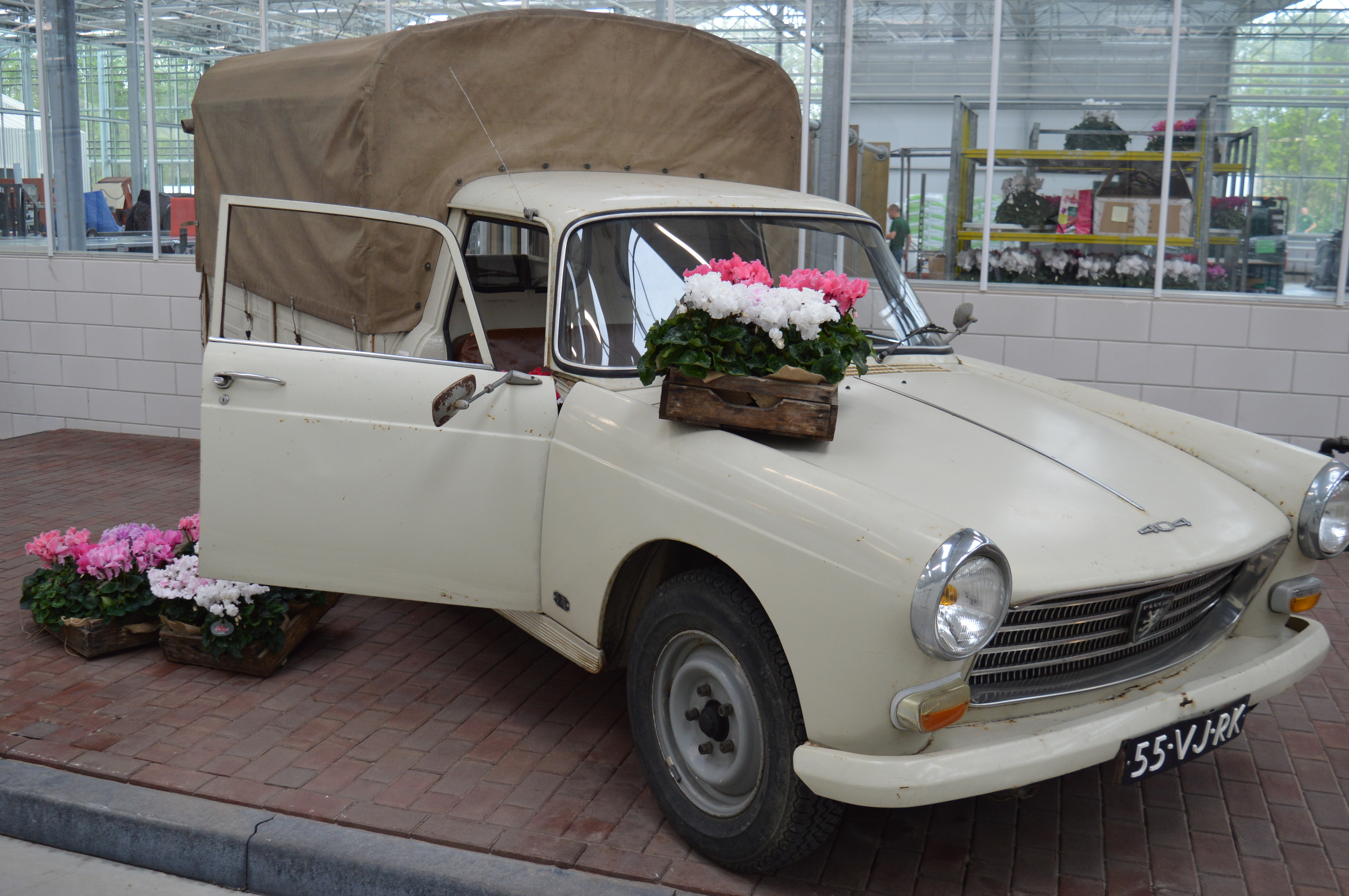 Een deel van dit cyclamen assortiment stond op een tafeltje gepresenteerd. Van de vele series die men inmiddels heeft, bestaat iedere afzonderlijke series vaak weer uit een hele serie kleuren. Het zal daarom om praktische redenen zijn geweest dat alleen de witte varianten waren uitgestald.