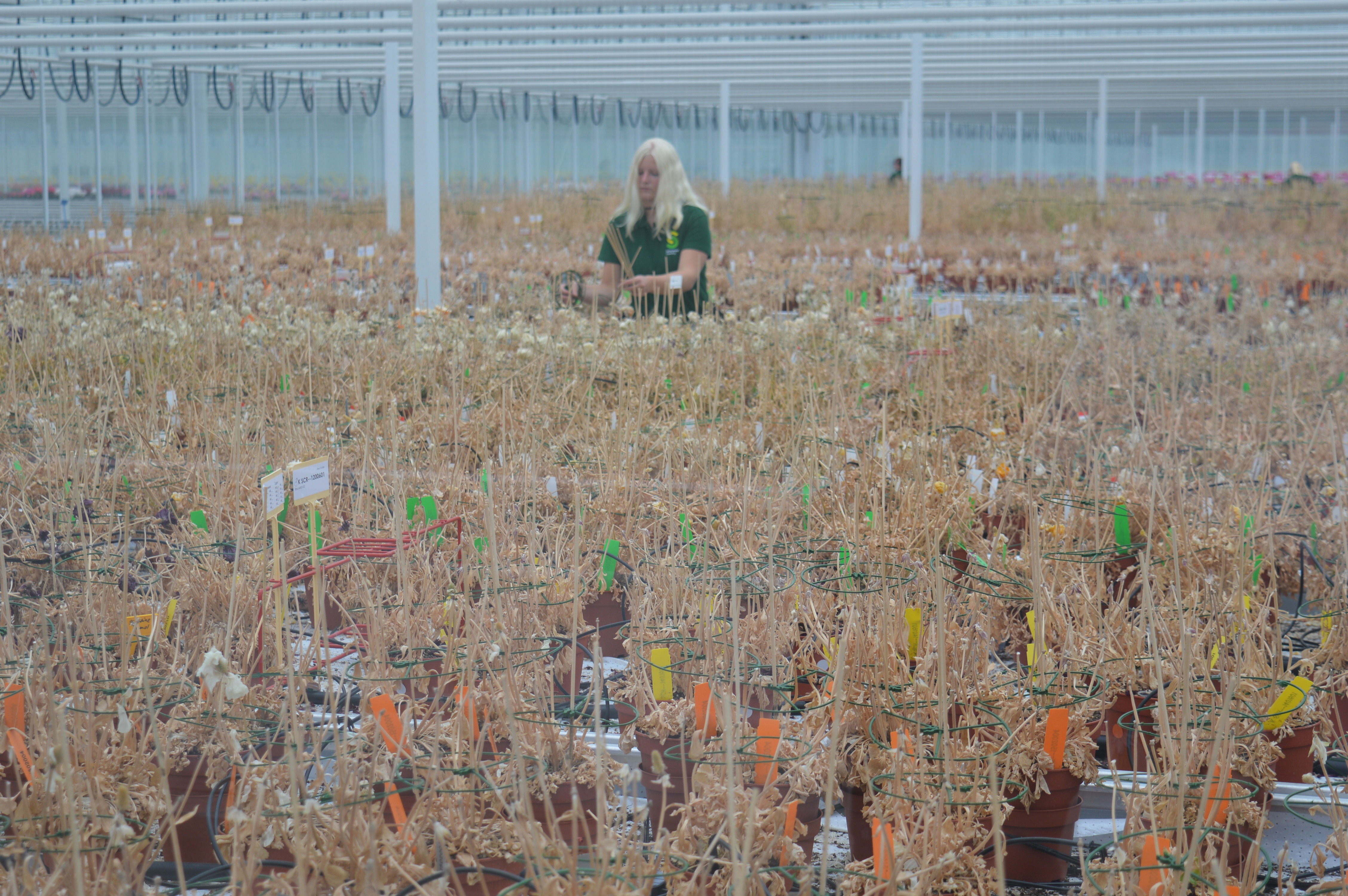 Een beeld dat je niet vaak ziet: tafels vol met dode planten. Toch is hier niets bijzonders aan de hand: de planten hebben hun werk gedaan, de vermeerderingsslag is gemaakt en nu zijn ze, letterlijk, klaar.