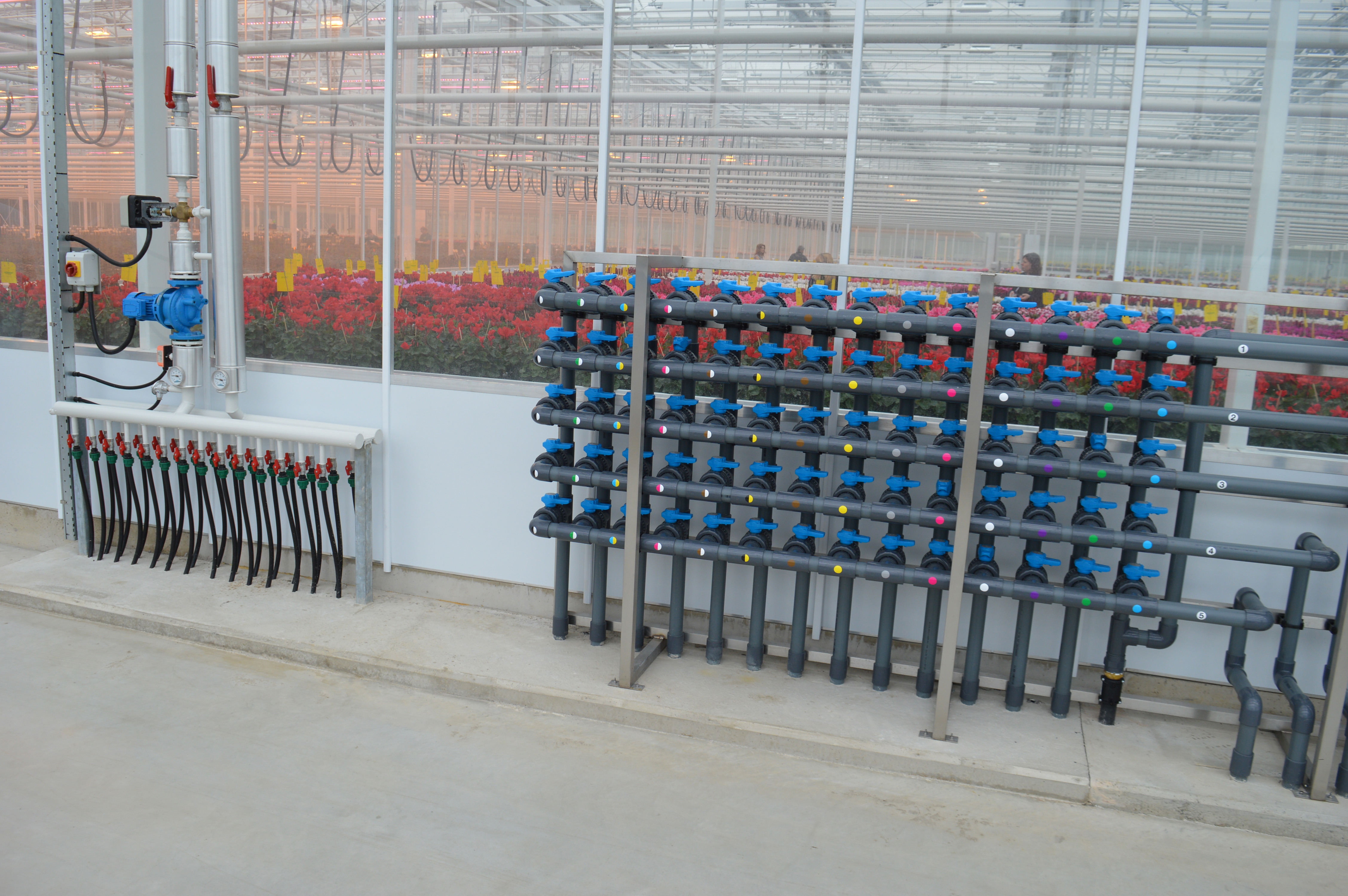 Op alle afdelingen kan, afhankelijk van de behoeften van het gewas, een pallet aan water-recepturen worden toegediend (en, voor zover niet opgenomen, weer worden afgevoerd). Dat ziet er dus zo uit.
