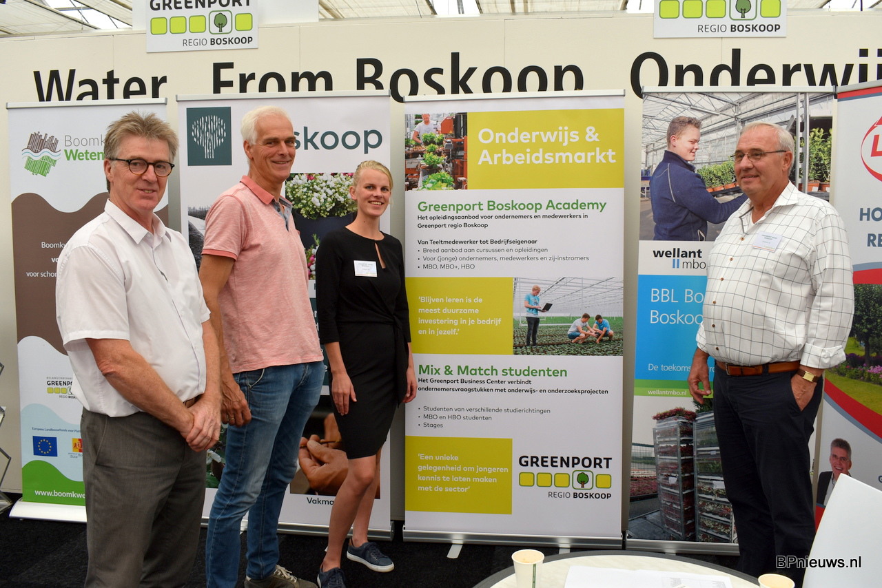 Greenport Boskoop met een mooi initiatief om studenten en werknemers doelgericht te laten leren en groeien in de sector. Samen het Welland College en Gemeente Alphen aan de Rijn hebben ze dit weten op te zetten. De stand werd bemand door Ron Kervezee van de Gemeente Alphen aan de Rijn, Peet Stolwijk van het Welland College en Anja van Tilburg samen met Kees vermeulen van Greenport Boskoop.