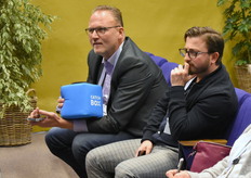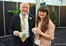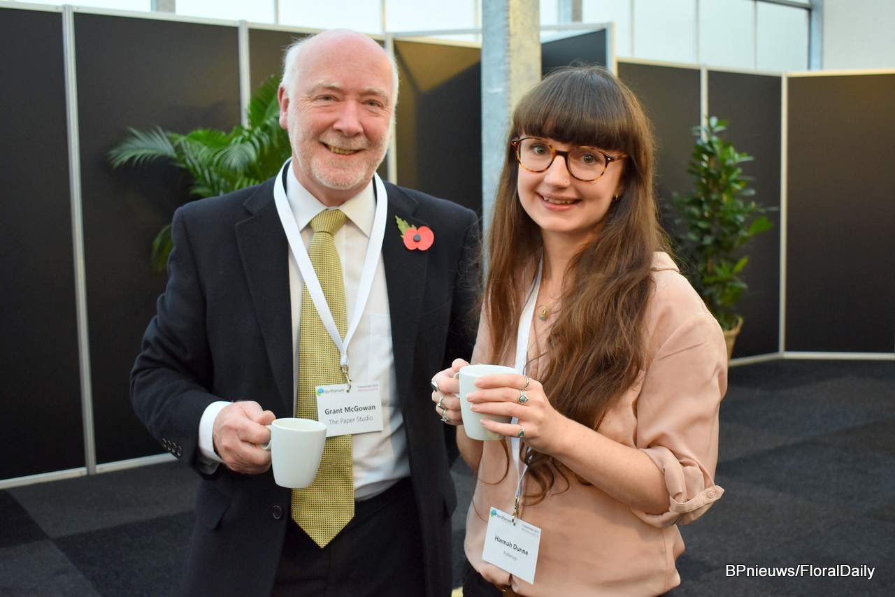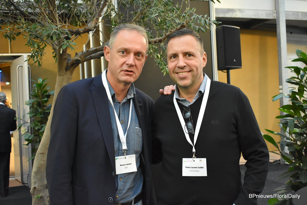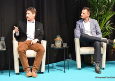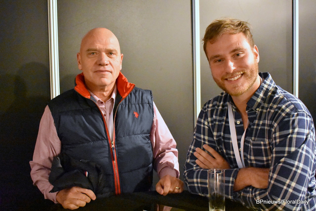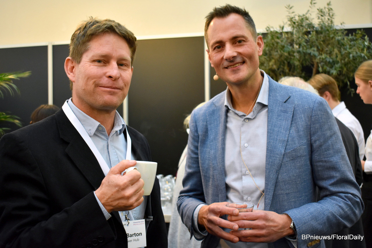 Later samen in het panel, hier nog samen aan de koffie: Paul Burton van Flower Hub en Dennis van der Lubbe van Bloemenbureau Holland.