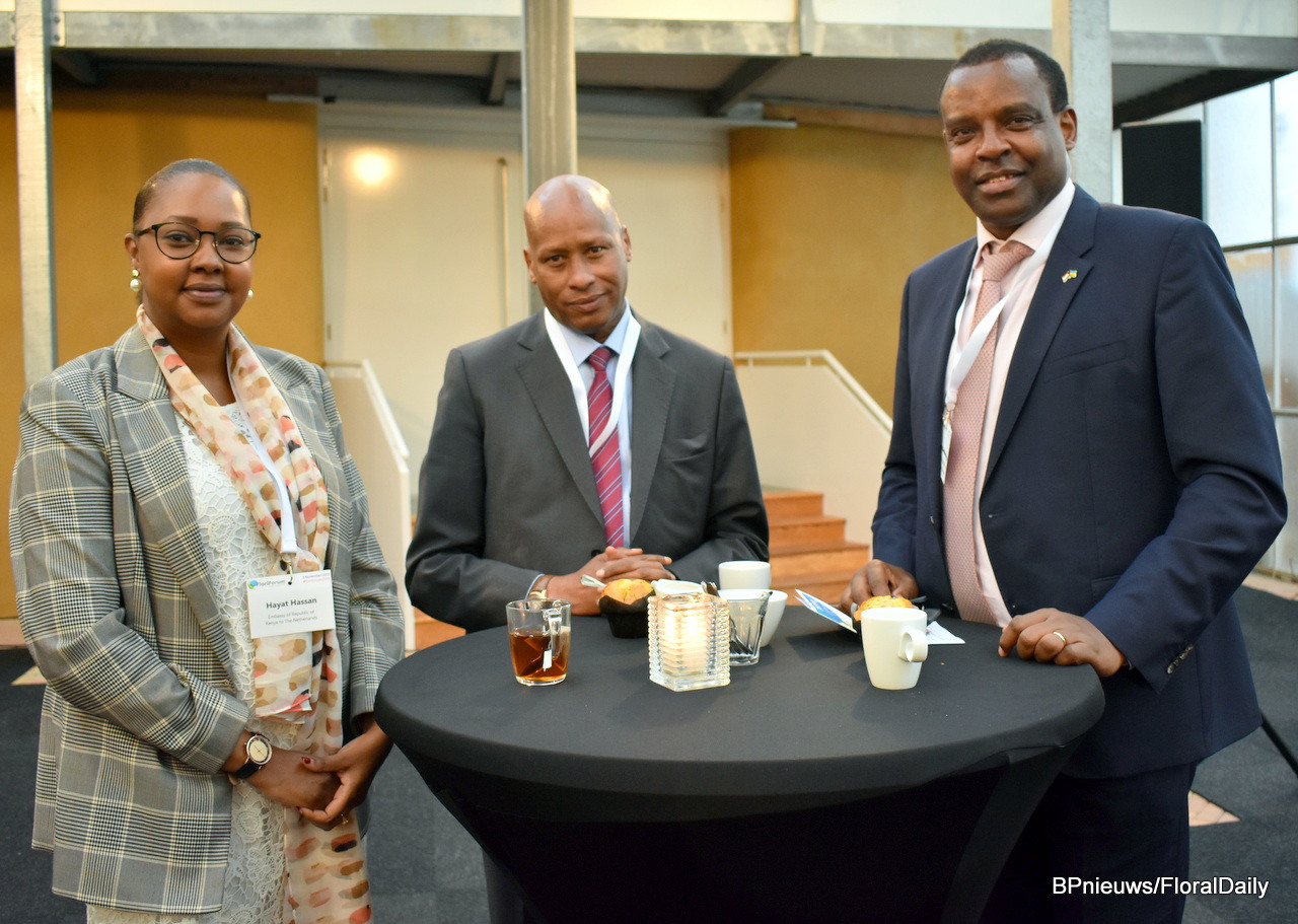 Een delegatie vanuit de ambasades: Hayat Hassan en Lawrence Lenayapa van de Keniaanse Ambassade en Jean Pierre Karebaranga van de ambassade van Rwanda.