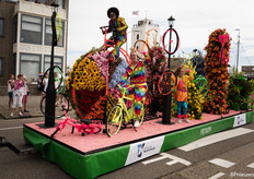praalwagen met het thema 'fietsen', aangeboden door gemeente Noordwijk