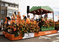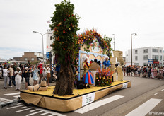 Praalwagen met het thema 'draaiorgel', aangeboden door Royal FloraHolland.