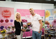 Samantha van der Gaag en Myron Dijkhuizen van Berkhout Plants met hun potchrysanten