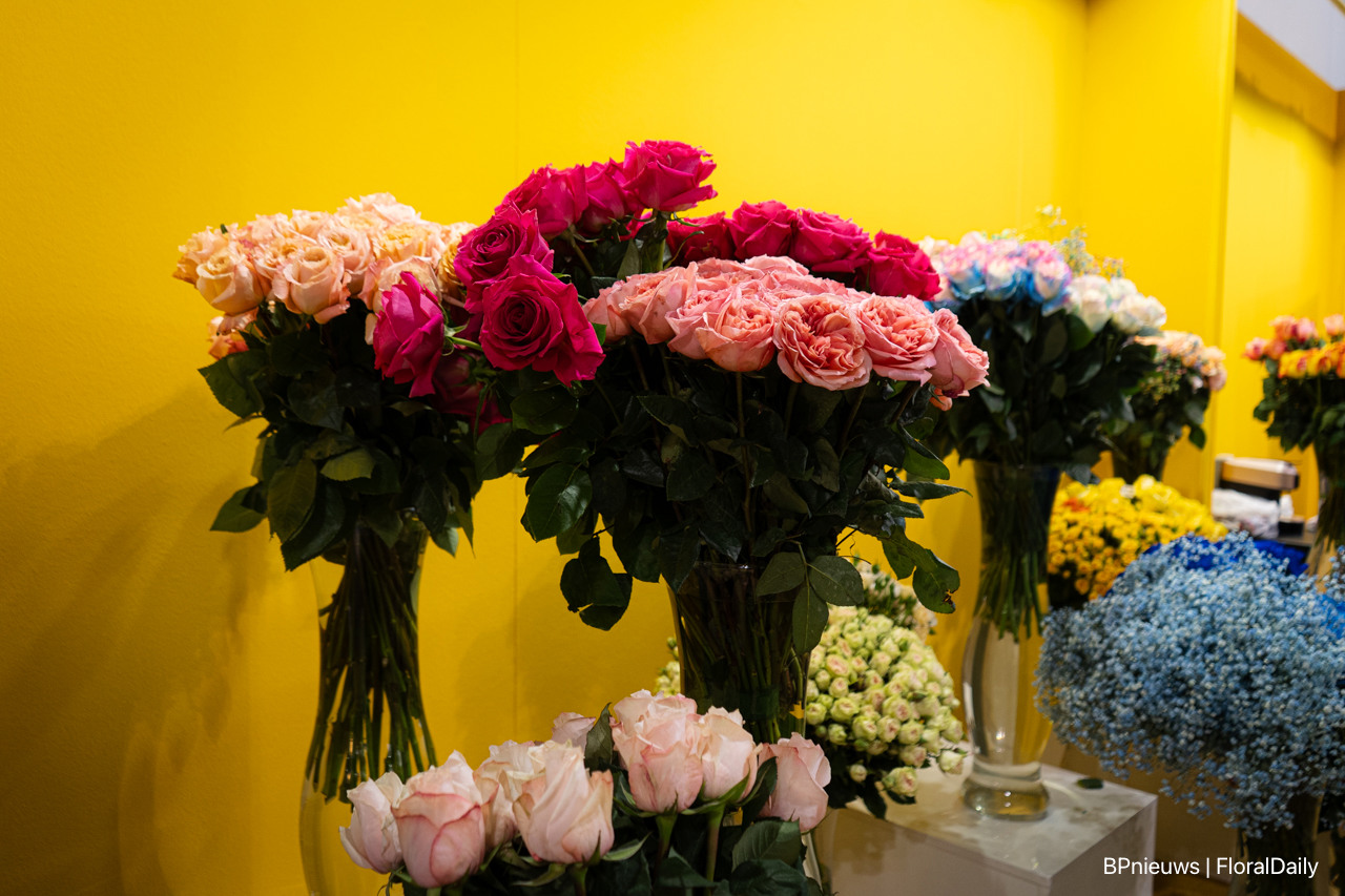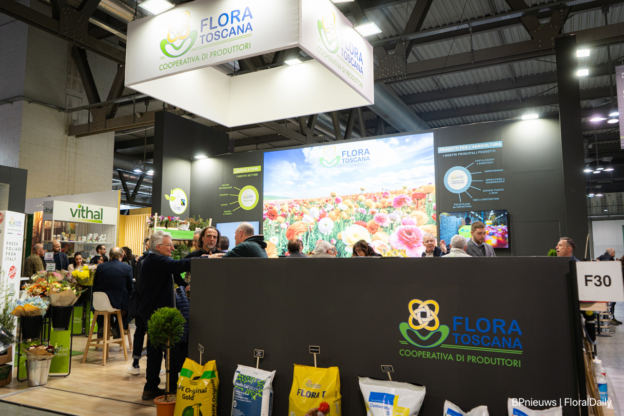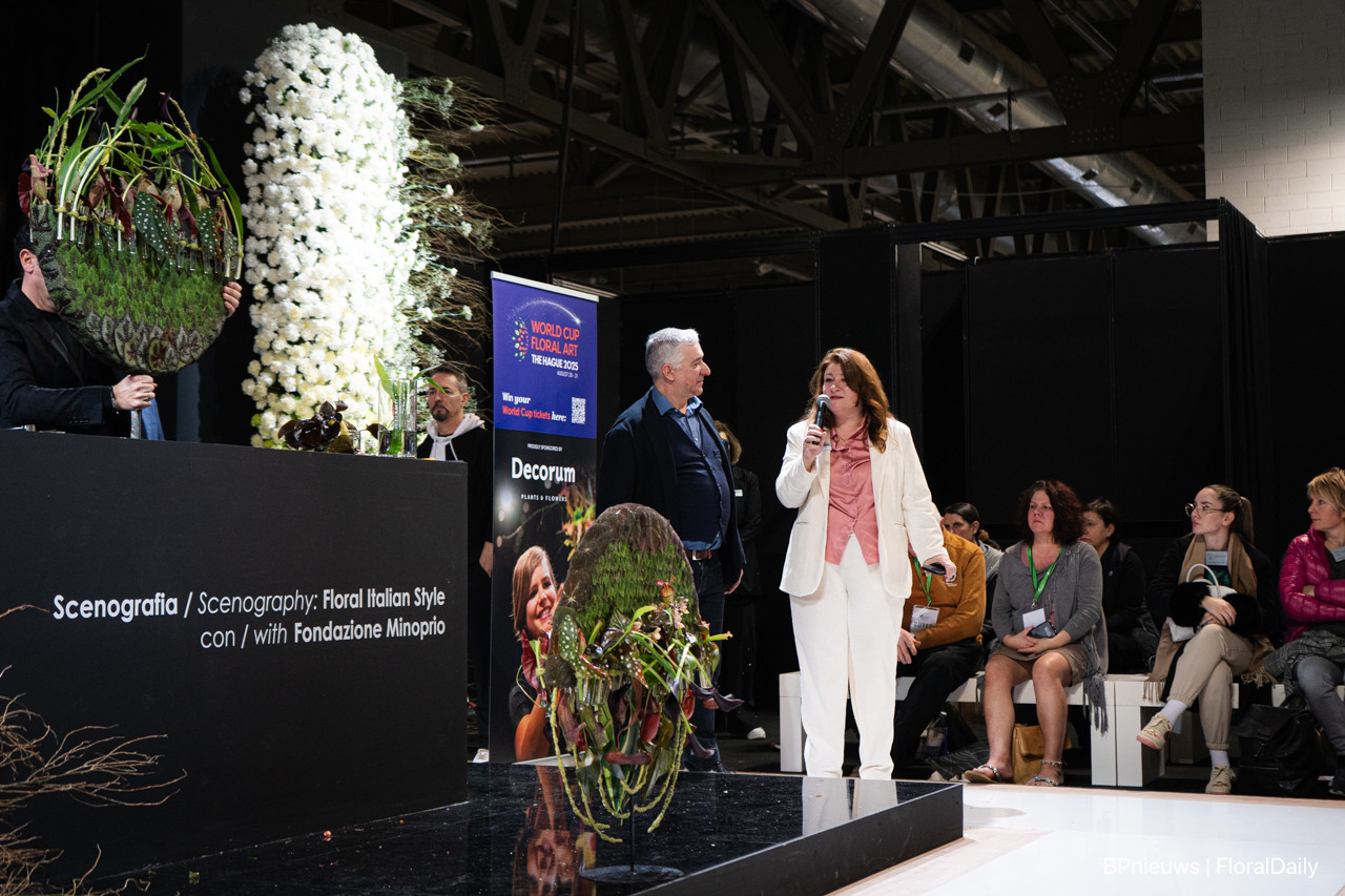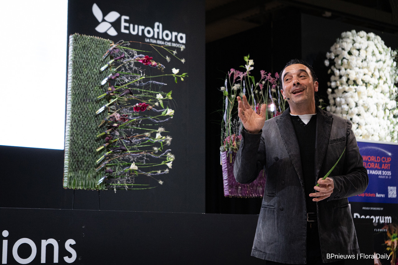 Filippo Faccioli van Myplant&Garden met Deborah Ghione van NIRP. Ze vertellen hoe steeds meer snijbloemen, ook vanuit Kenia en Ecuador, op de beurs te zien zijn.