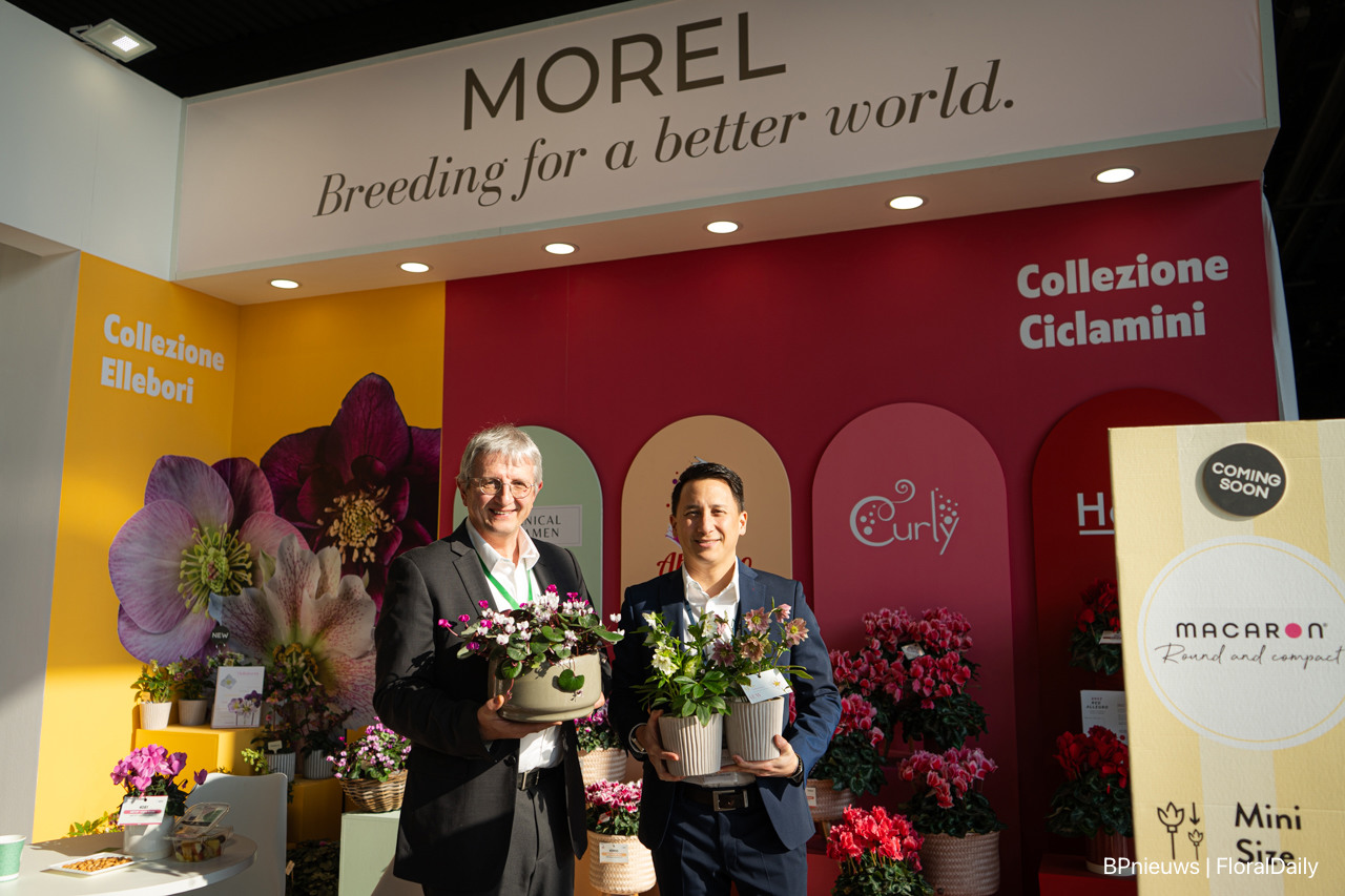 Guy Schertzer en Laurent Mossan van Morel met Cyclamen en Helleborus uit het assortiment