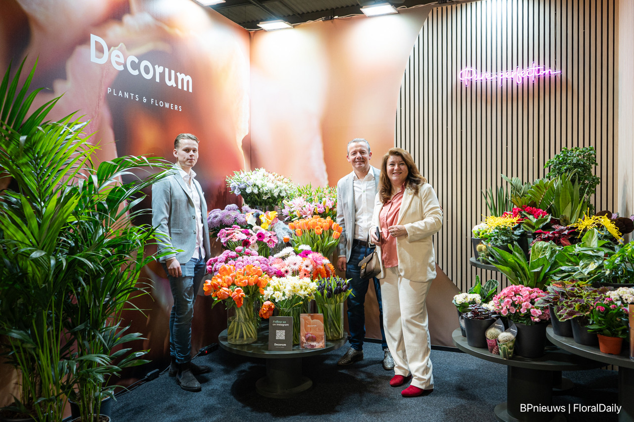 Frank van Holst van Montana lisianthus en Eric Jansen van Future Flowers, beide kwekers van Decorum met Warja Abrosimova.