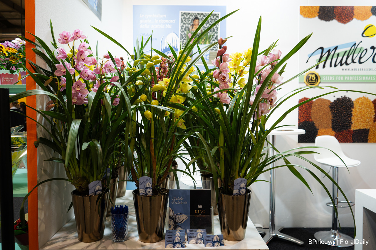 De cymbidium van Scholte Orchideeën in de gedeelde stand met Muller Seeds en in het Nederlandse paviljoen van GREENN.