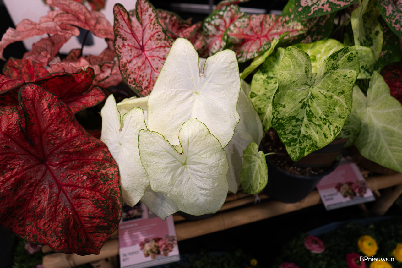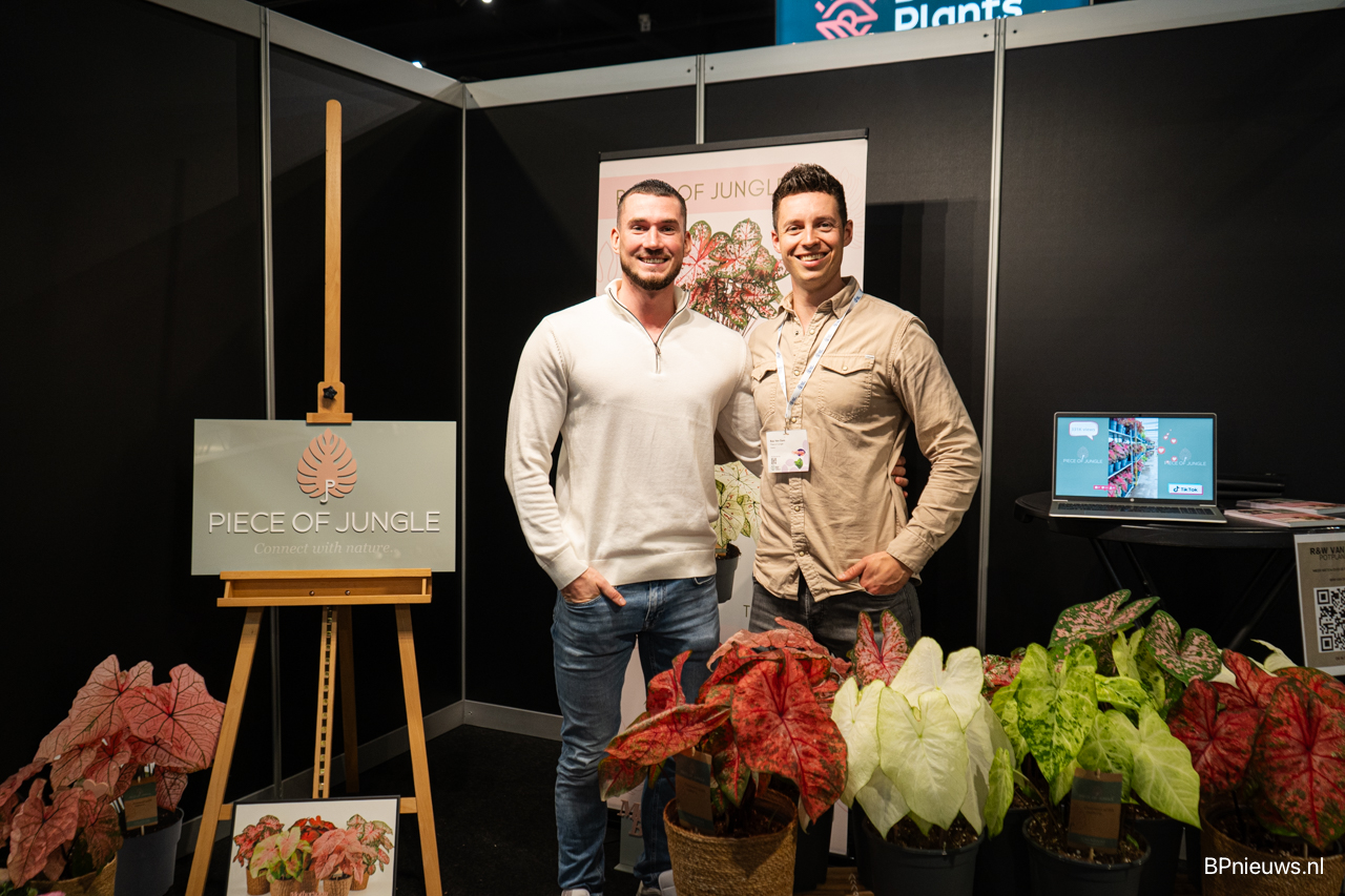 Luke van Kwekerij Westkaab en Bas van Dam van Piece of Jungle, waar de eerste 21cm pot Caladium van het seizoen te zien waren