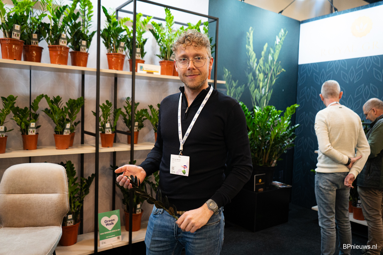 Tom van Winden van Van Winden Erica, waar onder andere Royal Green en Royal Colours onder vallen. Royal Colours is een nieuw bedrijf met hun buren in Snijhortensia's. Met de Zamioculca's gaat het goed, deze Raven wordt nu ook als snijtak gebruikt.