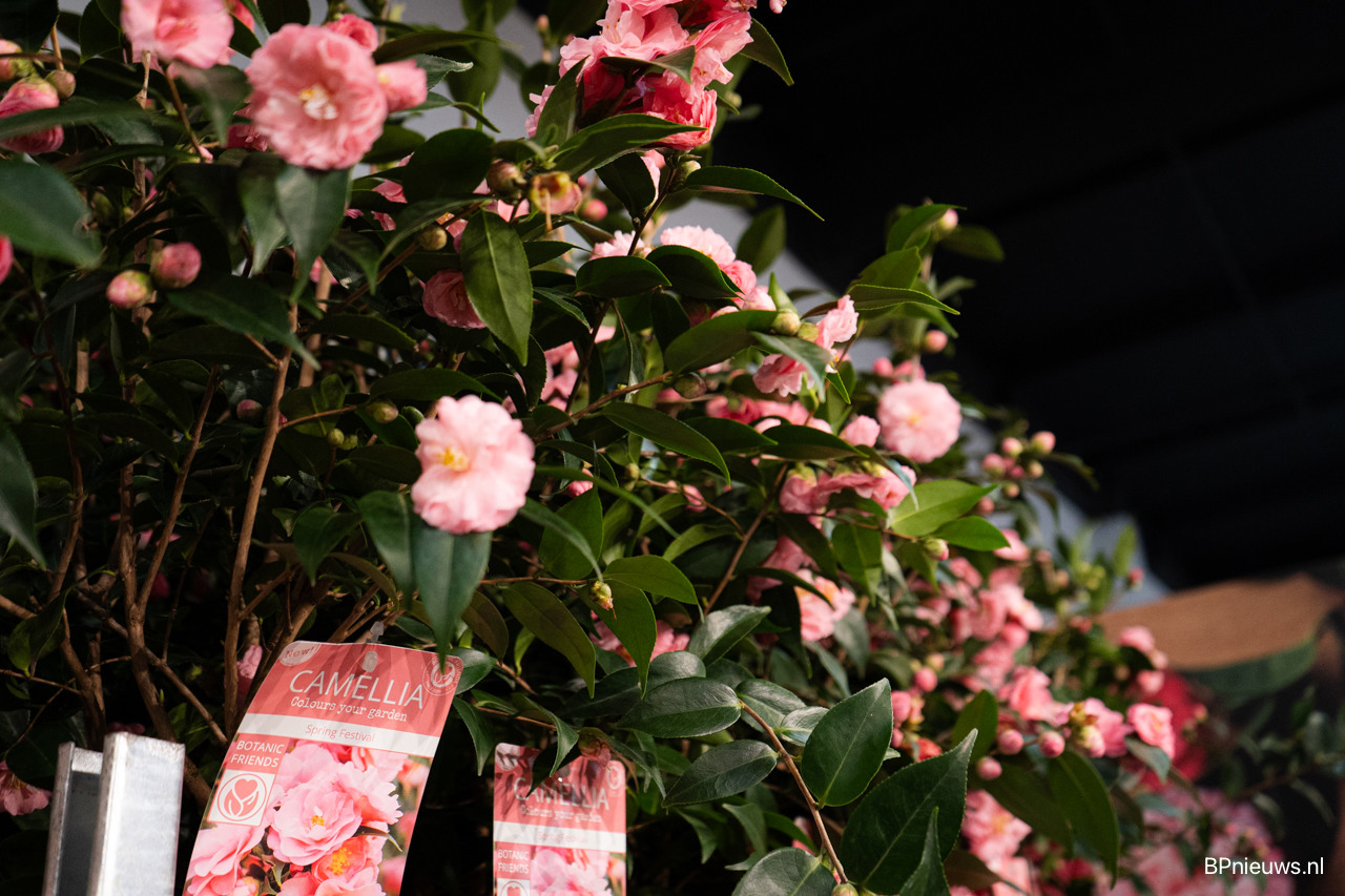 de premium camellia staat vol in de bloei